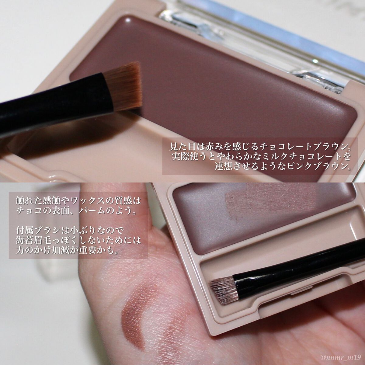 - 毛流れを感じる 本物のようなふさっと眉に 眉メイクにこれ1つ、パウダーINワックス 眉にのせた瞬間、パウダリーな質感に変化 ペンシルよりふんわり+パウダーよりくっきり ・自眉のような自然な仕上がり ・長時間仕上がり持続 ・こすれに強い ・湿気に強い ・こだわりのブラシ ・男性にもオススメ!