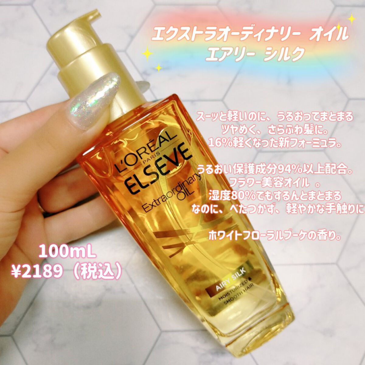 やっぱ名品だった!するんと軽やかなヘアオイル💛✨《ロレアルパリ》エクストラオーディナリーオイルエアリーシルク♡商品情報16%軽くなった*新ヘアオイル。(*ロレアルパリ従来品比)ヴェールのように薄付き。指通りするんとサラサラ、湿度80%でもまと...