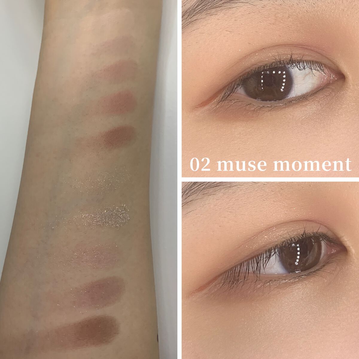\くすみモーブの陰影アイシャドウ🫶🏻/♡mudeMDショールモーメントアイシャドウパレット 02 MUSEMOMENT¥4,224物静かなミュートトーンにロージ色が加えられたディープなミュードロージ&パープルの組み合わせ。陰影ベースからパール...
