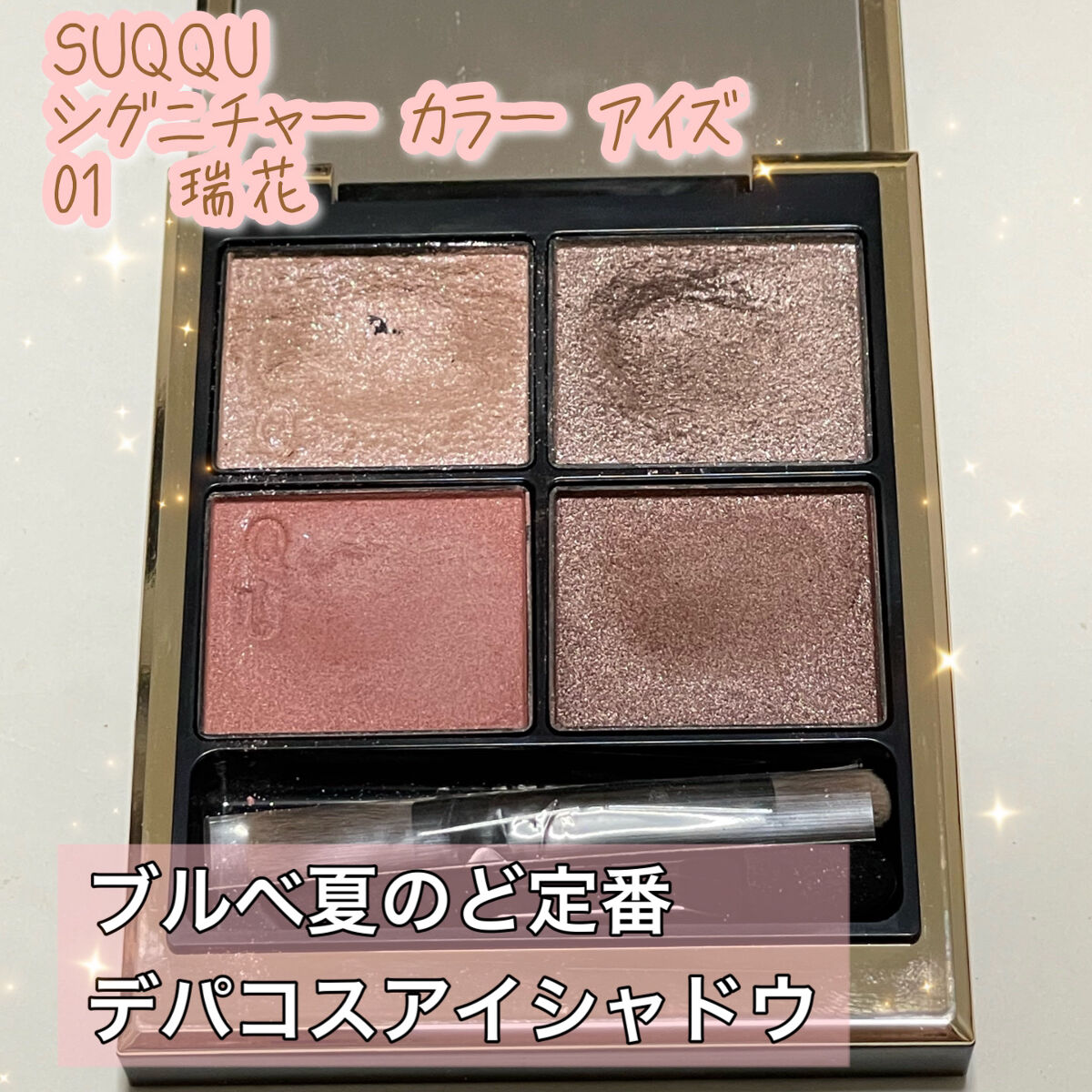 少量でもとっても綺麗✨ アイホールに品が出る気がします!笑 粒子は細かく柔らかい! ふわっとつくんだけど、きちんと発色!! 01瑞花 -MIZUHANAは、優しいピンクがニュアンスカラーになってとても可愛かったです!
