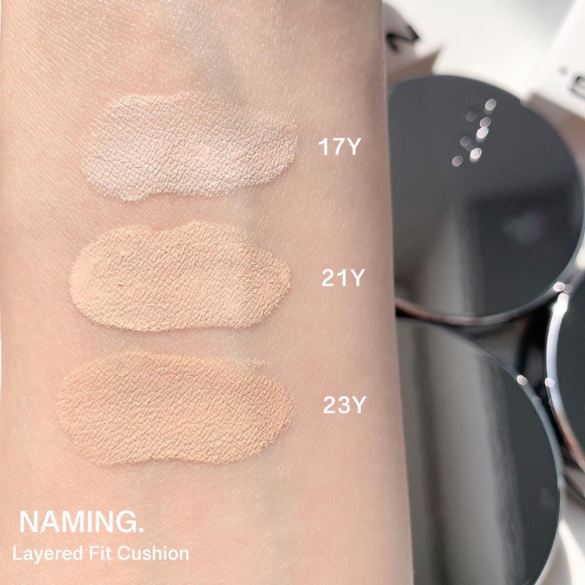 🤍NAMING.🤍✔️ネーミングレイヤードフィットクッション+長時間密着し、崩れない!+肌に吸い付くパフが均等にファンデを密着させる!+何度塗り直しても崩れない、重くもならない!<カラー全5色>・17Y1番明るいベージュ・19Nアイボリーベー...