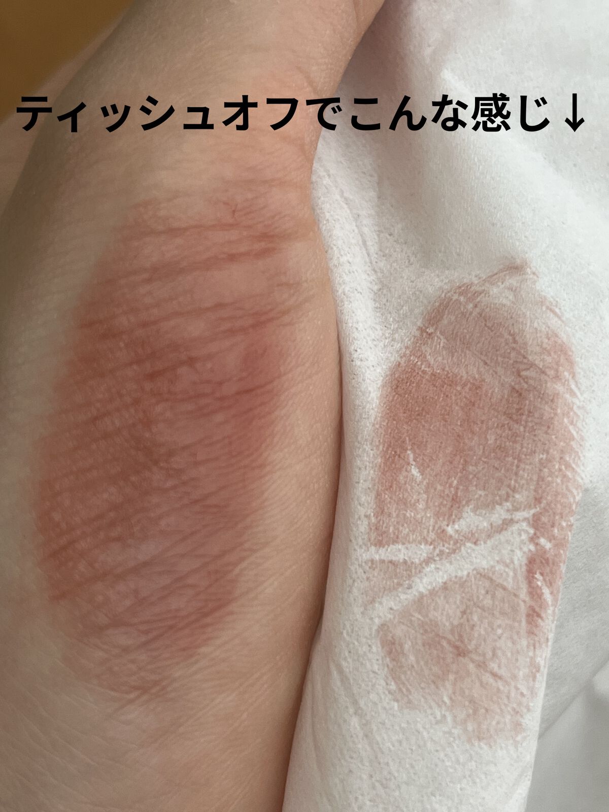 中身のラメ量はないか、とても少しでした! スウォッチのときはベビーピンクでしたが、私の唇ではビビットピンクでした。 塗ってから、無色→ベビーピンク→ビビットピンクと時間経過で色が濃くなっていく&青みになっていく印象です🌸 薄く塗るのが⭕️なようです! 保湿感はあるし、落ちにくいのでこの色が似合う方にはおすすめですが、スウォッチで気付きにくい部分ですので注意が必要かもしれません…! 一番最初のスウォッチと、二度目以降のスウォッチでも色が少し違く見えたのでもしかしたら、吹き付けの部分がなくなればスウォッチでもそのものの色味がみれるかもしれません! 店頭のスウォッチで吹き付けが取れていなかったら何度か手にスウォッチしてみてもいいかもしれません…!