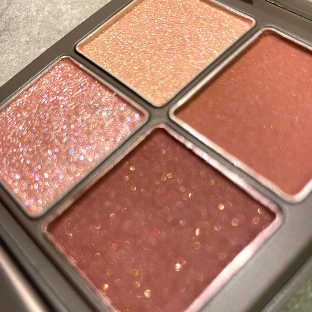 うん、やっぱ可愛い!♡ 神配色👏🏻 今の時期より夏に登場頻度増えそう🙌 ギラギラゴールドがタイプすぎる♡ 左:イエローゴールドシマー ⇒コッパーとゴールドのラメがたっぷり! 大粒ラメがギラギラ夏っぽい 右:シマリングライトピーチ ⇒発色は薄いもののベースや涙袋にだ活躍してくれる ピンクベージュ 左:オレンジ&ゴールデンシマー ⇒ありそうでなかったオレンジカラー オレンジからのゴールドの偏光がたまらない🍊 右:マットパープルレッド ⇒かなり濃いめのパープル!オレンジメイクにアクセントと深みを出してくれる