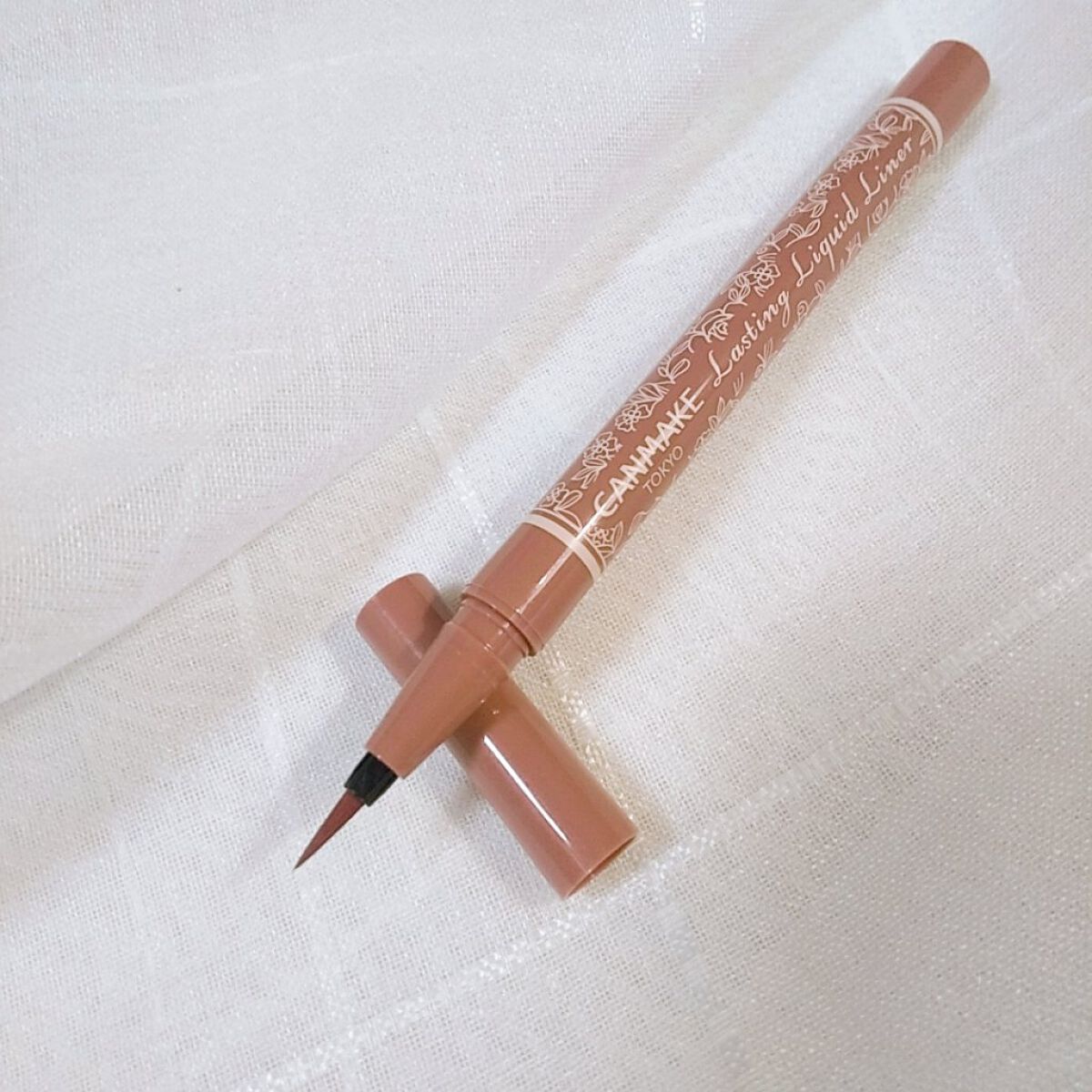 白味系のブルージュカラーは、ニュアンス感のある絶妙な色味がとてもお洒落です。 少し青みがかったグレージュの色カラーが柔らかな目元に仕上げてくれます。 目尻に使うとすごく可愛く今年の夏メイクに活躍しました。 CANMAKE ラスティングリキッドライナーにじみ・くずれに強い、0.1mmの極細筆リキッドアイライナー! スッとなめらかな描きやすさが魅力で、0.1mmのコシのある極細筆を採用したことで、細いライン、太いラインもブ描きやすい。 さらにまつげの隙間埋めや目尻のハネ上げも簡単ですよ。 そして水・汗・涙・皮脂・こすれに強い、速乾タイプです。また耐水性特殊ポリマーがアイラインの表面をコートします。 美容液成分配合!保湿成分のカニナバラ果実エキス・パンテノール・ヒアルロン酸Na・サクシノイルアテロコラーゲン配合されています。