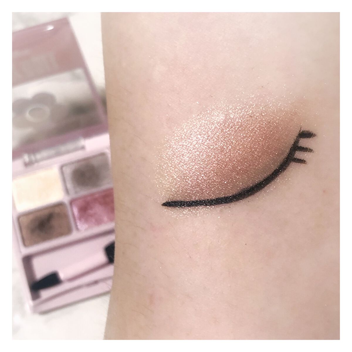 透け感発色 4色パレット 高輝度ラメ 3種の美容エモリエントオイル配合 チップ付属 発色はパレットよりもやや薄め 右下以外はシマーパールな仕上がりで右下のみラメ感を感じる 柔らかなスモーキーメイクをしてみたい方 黄みやブラウンに寄っていないグレージュをお探しの方 お勧め