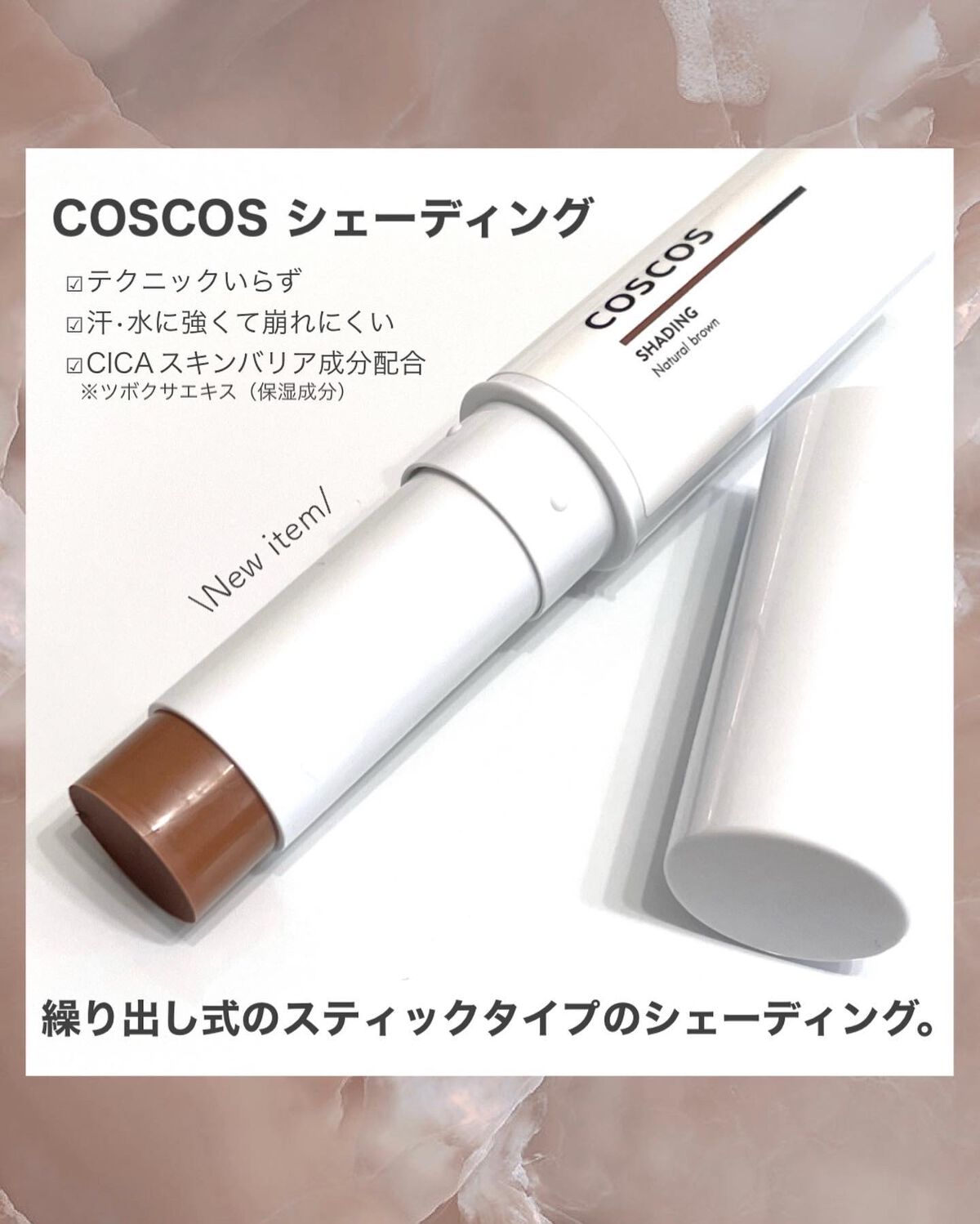 メイクにこだわる多くのコスプレイヤーさんがご指名のCOSCOS✨ 『完璧肌』 『肌への優しさ』 『使えるコスメ』の3つのこだわりを大切にして開発していて、プチプラなのに優秀なコスメを沢山出しているブランド✨ ひと塗りで簡単に自然な陰影が作れるシェーディング‼︎ 繰り出してそのまま塗れちゃうので手軽に使えます。 メイクしながらお肌を守る、「CICA*2 スキンバリア成分」も配合✨