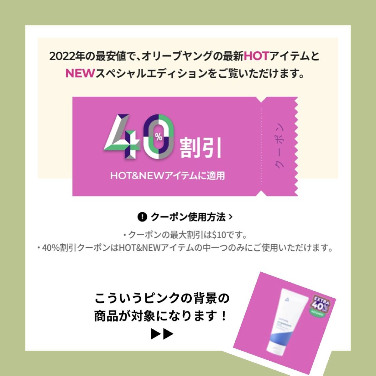 セール特典①スキンケア&メイク割引クーポン②日替わりセール③追加割引クーポン④ルーレットイベント⑤クリアランスセール⑥友達推薦プログラム 「今日の特価」24時間限定ディール商品などの情報は公式インスタグラム@oliveyoung_global を確認してください☺️