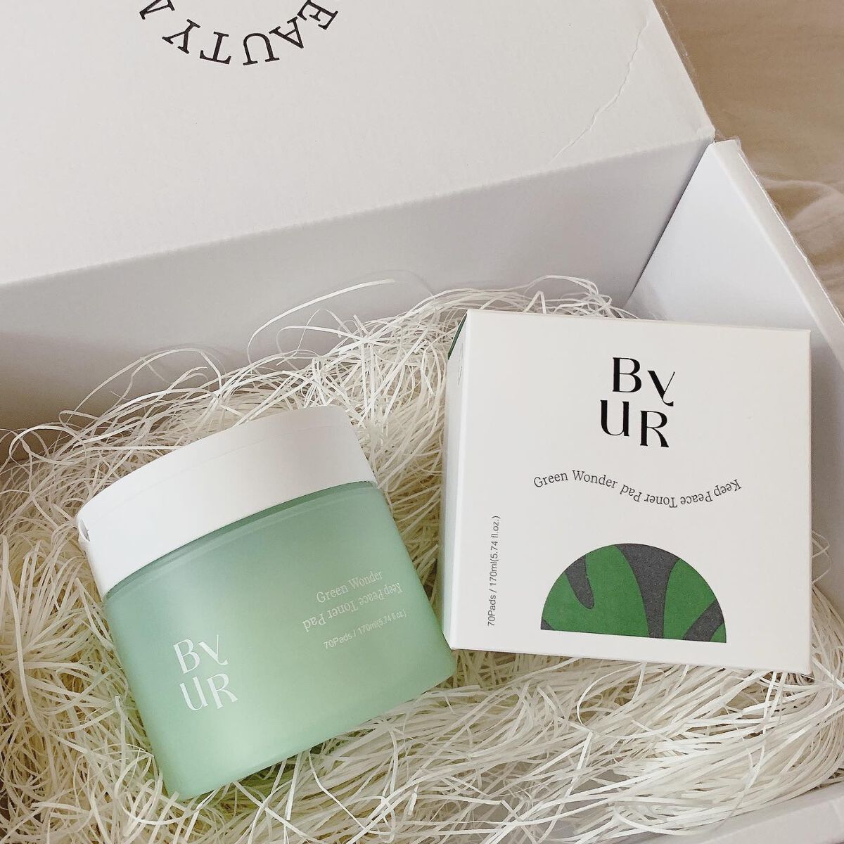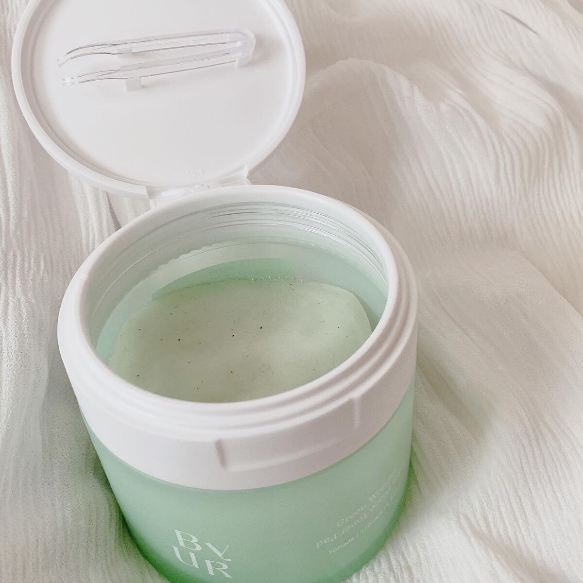 ※2023年使用品トナーパッド・商品名ByUR(バイユア) スージンググリーントナーパッド ビタギビングトナーパッドサンプルエンボス加工なしの薄めパッド拭き取りより部分パック向きかな保湿力はしっかりなイメージ...