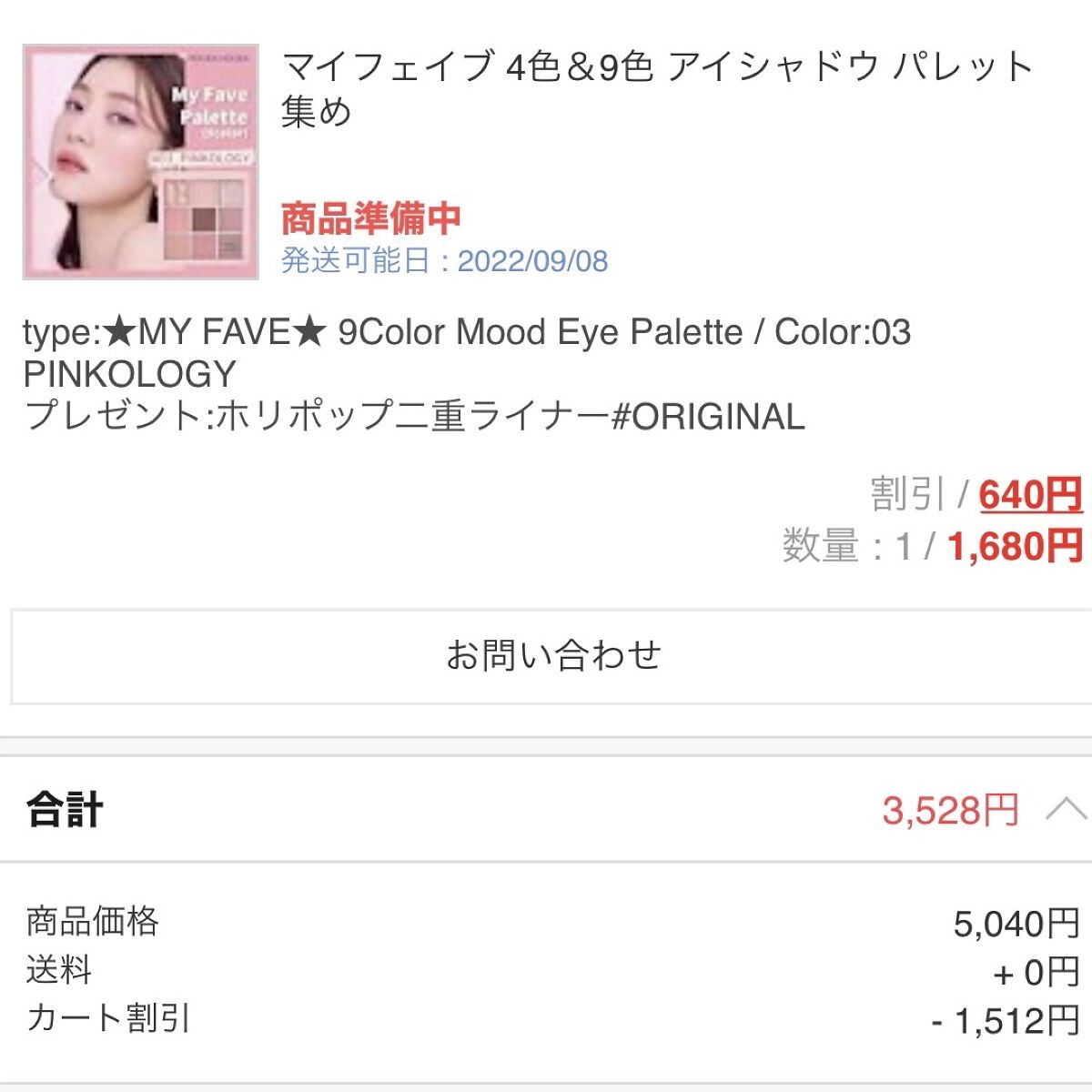 メガ割クーポンを3枚全て使用するので、余っている人がいればぜひ✨ 価格 2100円▶️メガ割価格 1680円 ショップクーポン5000円以上30%クーポン 適用 お会計 3528円😂 ホリポップ二重ライナーのプレゼント付き🎁 ちなみに私は⬇️のカラーを購入しました。01 DAISY03 PINKOLOGY05 NEATKNIT 🆕 05は黄味が強そうな気がしてドキドキですが、秋メイクに役立ちそうです🍁🍂