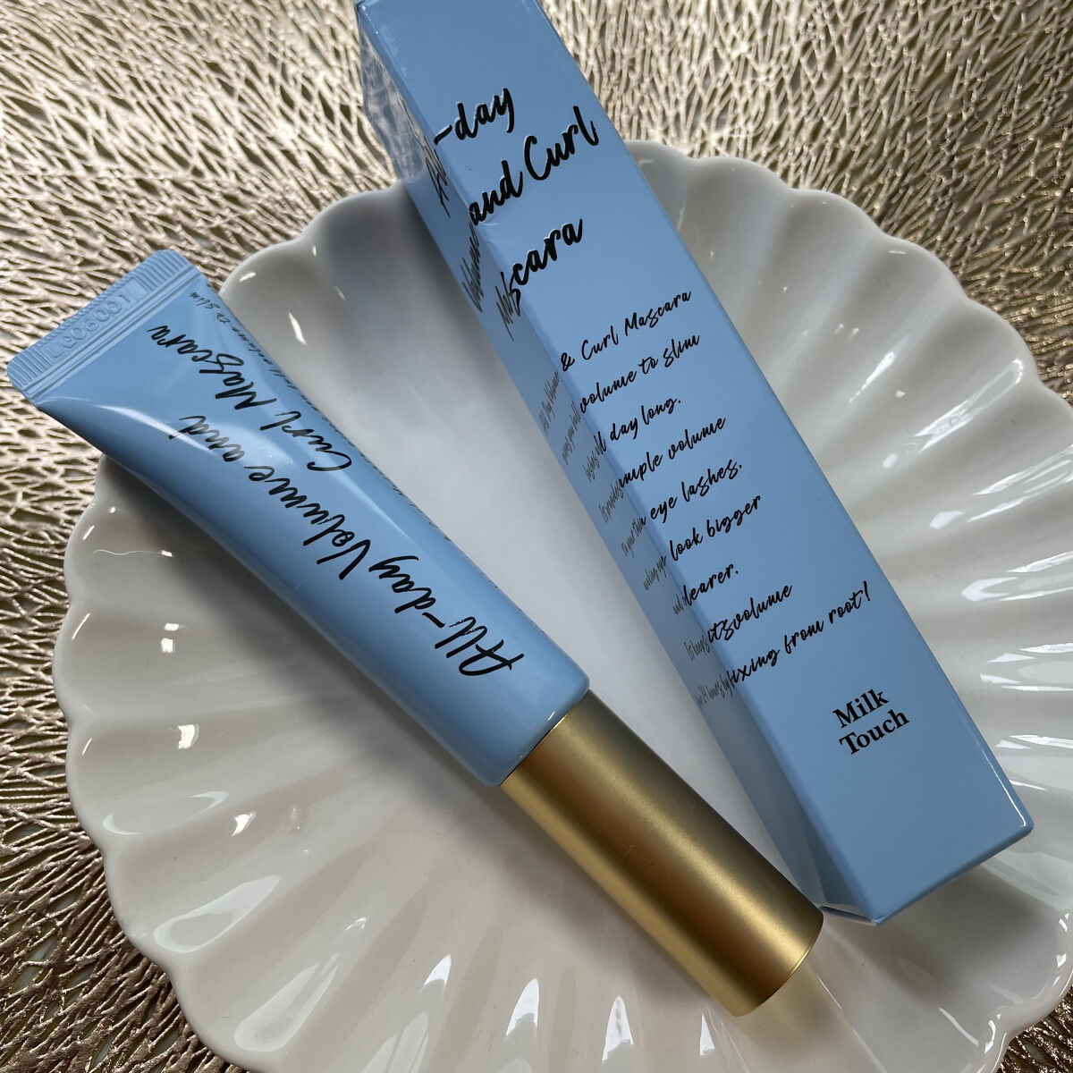 Milk Touch オールデイ ボリュームアンドカールマスカラです😌 細目のブラシで塗りやすく、ボリュームが出てカールアップもするなと思いました✨ 落ちにくいからちょっと落としにくさも感じました。 カールキープされる