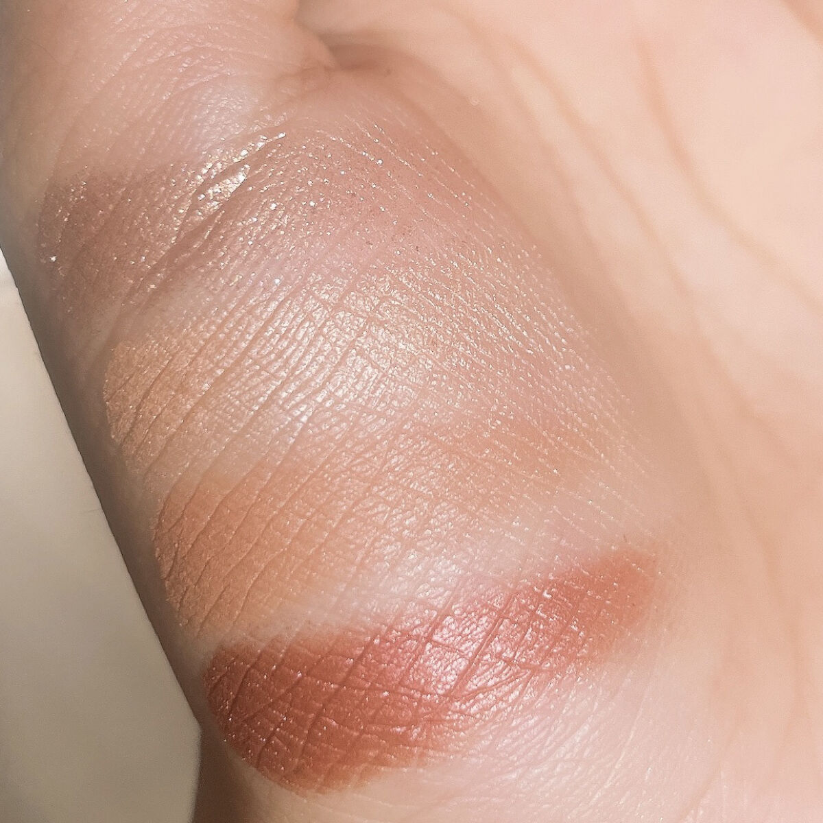 右下の赤みブラウンカラーに惹かれた...! テラコッタに少し赤を足したような、絶妙な色味ですごく可愛い💖 発色が綺麗で、パールとマット、ラメで立体感のある瞳にメイクできる✨ ラメもパールも綺麗だし、めっちゃ盛れた!! 普段使いしやすい配色で、毎日使えるのも嬉しい♡ 気になったらぜひチェックしてみてください✨