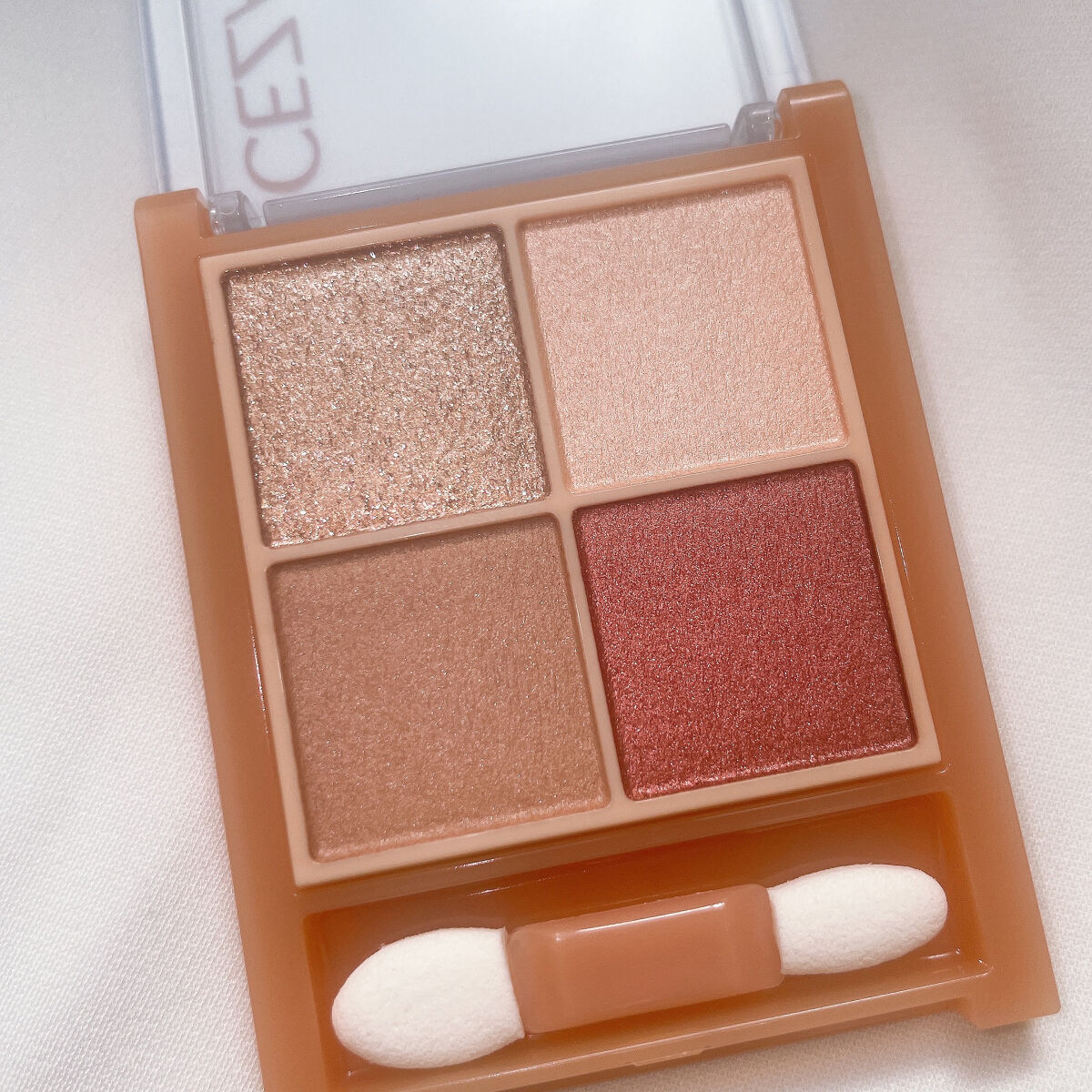 - ラメ・パール・マット3質感の4色アイシャドウ。 肌馴染みの良いベージュを基調としたカラー。ラメ・パール・マットの3質感を重ねて、自然にまぶたを強調し奥行のある大きな目元へ。 しっとり溶け込むような柔らかなパウダーなので、スルスル伸びてまぶたにピタッと密着。保湿成分(スクワラン・ホホバ種子油)配合。