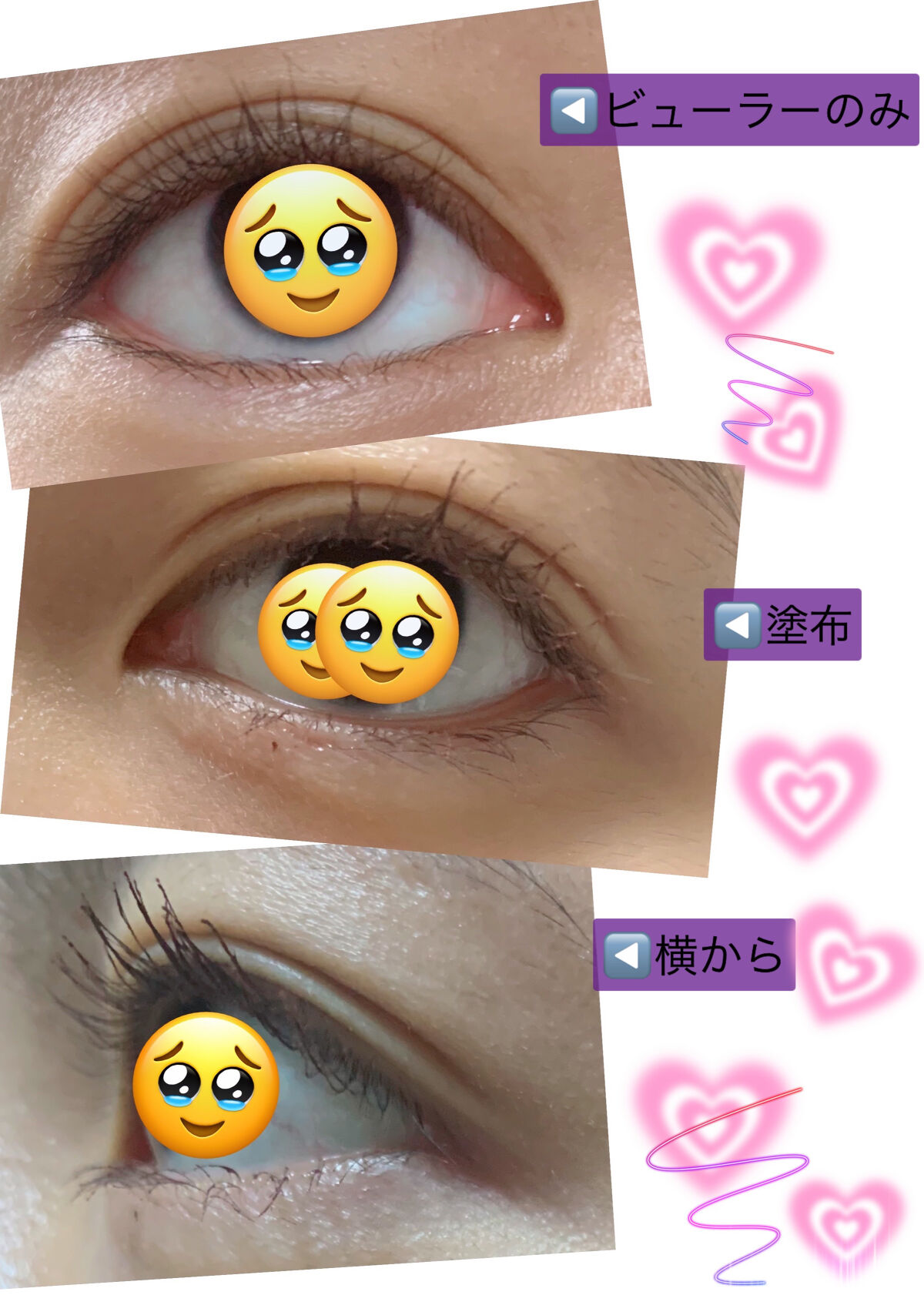 メイクし始めた頃に太ももとふくらはぎにマスカラ挟んだらマスカラが温まって液が付けやすくなる“気がする”ので毎回やってます😆 ビューラー いやぁ本当これも6年くらい前から使ってたのですが広いからまじでまつ毛を全キャッチするのでおすすめです。いとも簡単にまつ毛を上げてくれます。 マスカラ マスカラ液は重めで瞼が疲れるのですが自分はそれがいいんですよね。なぜなら自分はスッピンの目がぼんやりとしているのですが、その上に重さを加えたら二重がパッチリとして目力が加わるので そのような方にもおすすめだと思います! カール力はもちろん落ちにくさもえげつないです。自分は1日に尋常じゃないくらいあくびをするのですが何度涙を流しても滲まないし落ちません。6年くらいリピ愛用してます💗 マスカラコーム UR GLAMまたやってくれましたね。コームにお金かけたくない方にオススメです。他のブランドと比べて使ったことは無いですが正直UR GLAMだけで安心感すごくないですか?笑
