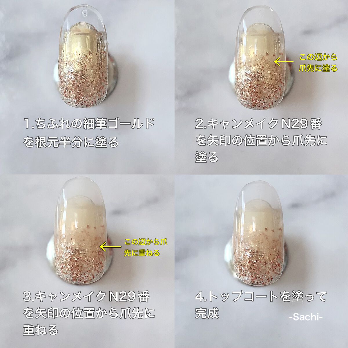 こんにちわ♡今回はキャンメイクのマニキュア2色で出来る、簡単グラデネイルのご紹介です💕先端にかけて白くなるベイビーブーマーは、美爪に見えるのでグラデの中でもとても人気デザインですよね(*´꒳`*)やり方は画像を参考にしていただければと思います...