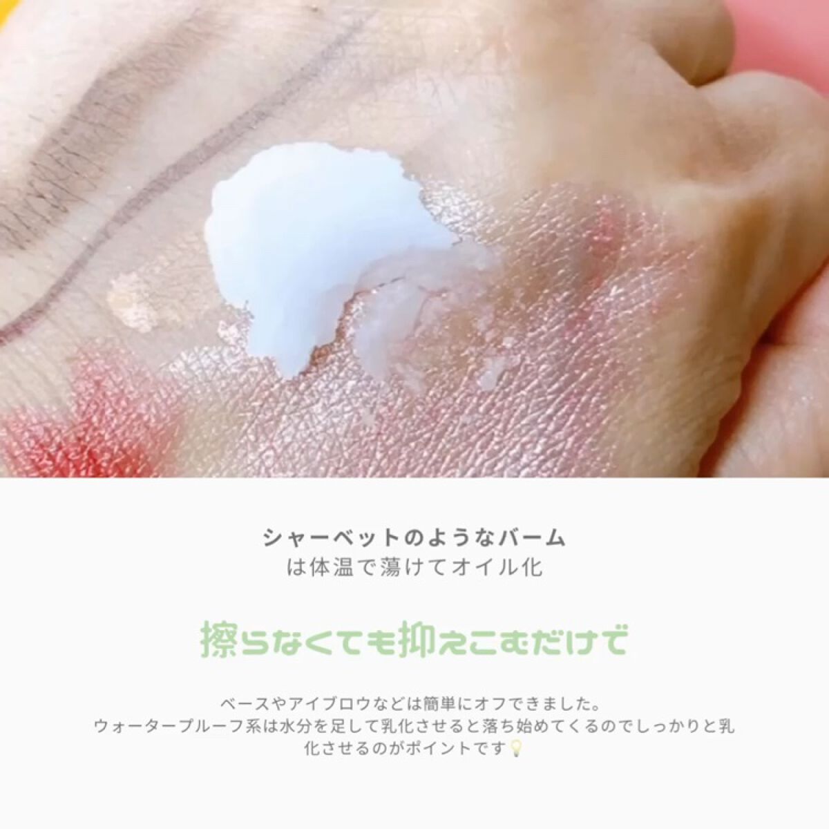 | バームが取ってみるとじんわりととろけてきて、なめらかなテクスチャーに!馴染ませやすくて使いやすいです。 | 詳細を見る | ||