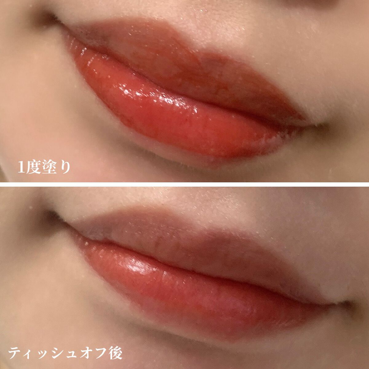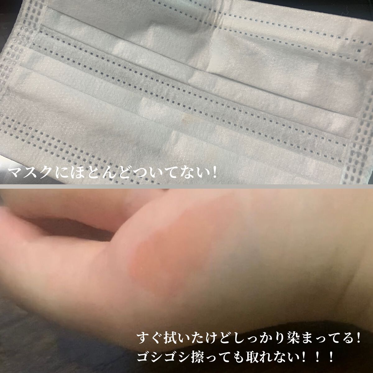 思ったより赤み強めのカラーでした。 時間を置いても食事をした後でも全然色落ちせず残ってたので驚き!!👏👏 食事中はどれだけ口に付かないよう気をつけても口についちゃうし、ティッシュで拭き取ることが多い私でも、色がしっかり残ってるので感激しました🥲
