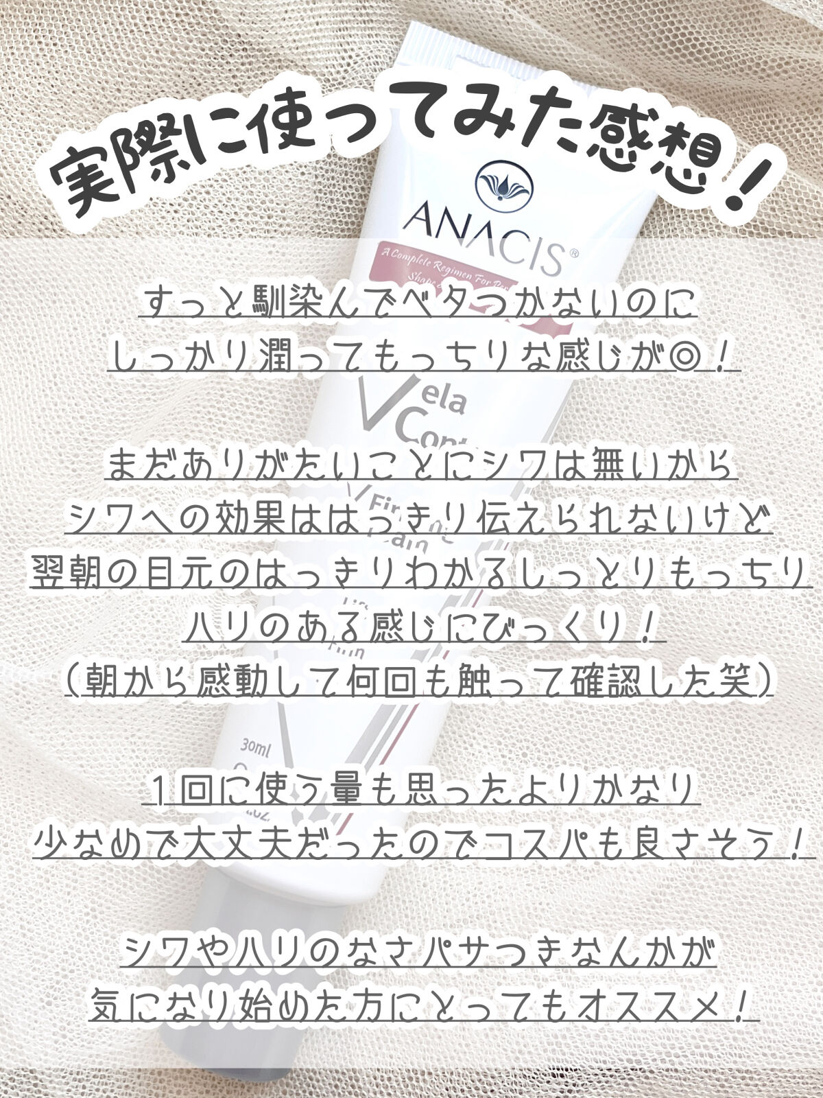 ANACISの🤍ベラコントゥアーフォーミングクリーム❤️ベラコントゥアー4DリフィルVパックを紹介💁🏼♀️🤍ベラコントゥアーフォーミングクリーム目、ほうれい線、首などに使えるシワ対策クリーム柔らかいテクスチャーで肌にスーッと馴染んでベタつか...
