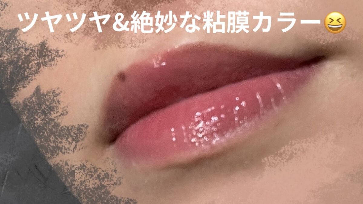 クールトーンのピンクベージュカラー 私の肌や唇だと青みと赤みのあるピンクベージュに発色しました。ブルベさんが得意そうな色。ツヤが可愛い💕 私はイエベですが、透け感があるから薄く塗れば使えるかなと思いました。 ジューシーラスティングティントは香りが強めなイメージだったから使ったことなかったけど、塗って時間をおけばそんなに気にならなかったから、リニュ後の買ってみようかな🫶