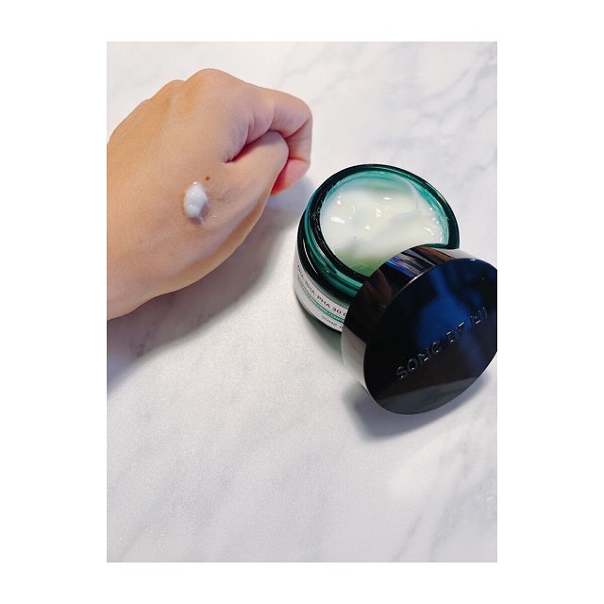 サムバイミーは、敏感肌やトラブル肌タイプに使いやすいダーマスキンケアブランドになります✨ AHA、BHA、PHAの黄金バランスで角質をやさしくオフ。 手に取ると、さらっとしたテクスチャー!とろみもなく、とてもみずみずしい。スッとするような清涼感のある香りもいいですね🌿 ツボクサエキス70%配合で肌バリア機能を強化してくれるというデイリークリーム。伸びが良く、ベタつかない使用感が心地良い。