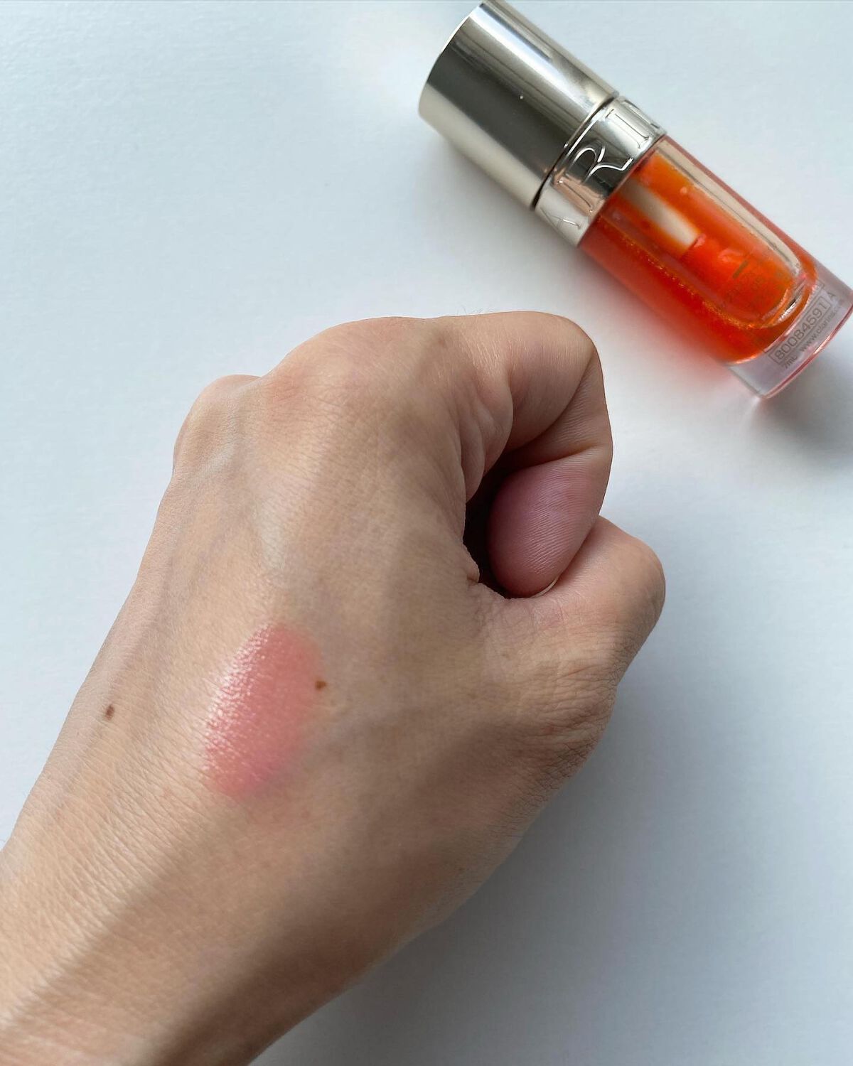 さらっとしたオイルでベタつかずツヤツヤな仕上がり✨ 色んな色があってどれもかわいい〜😍 03,04,08は水分に反応して色が変わるとのことで確かにスウォッチ直後より数秒あとのほうが色が濃くなってた! トリートメント効果が高いから寝る前のリップケアにもおすすめなんだって〜🤩