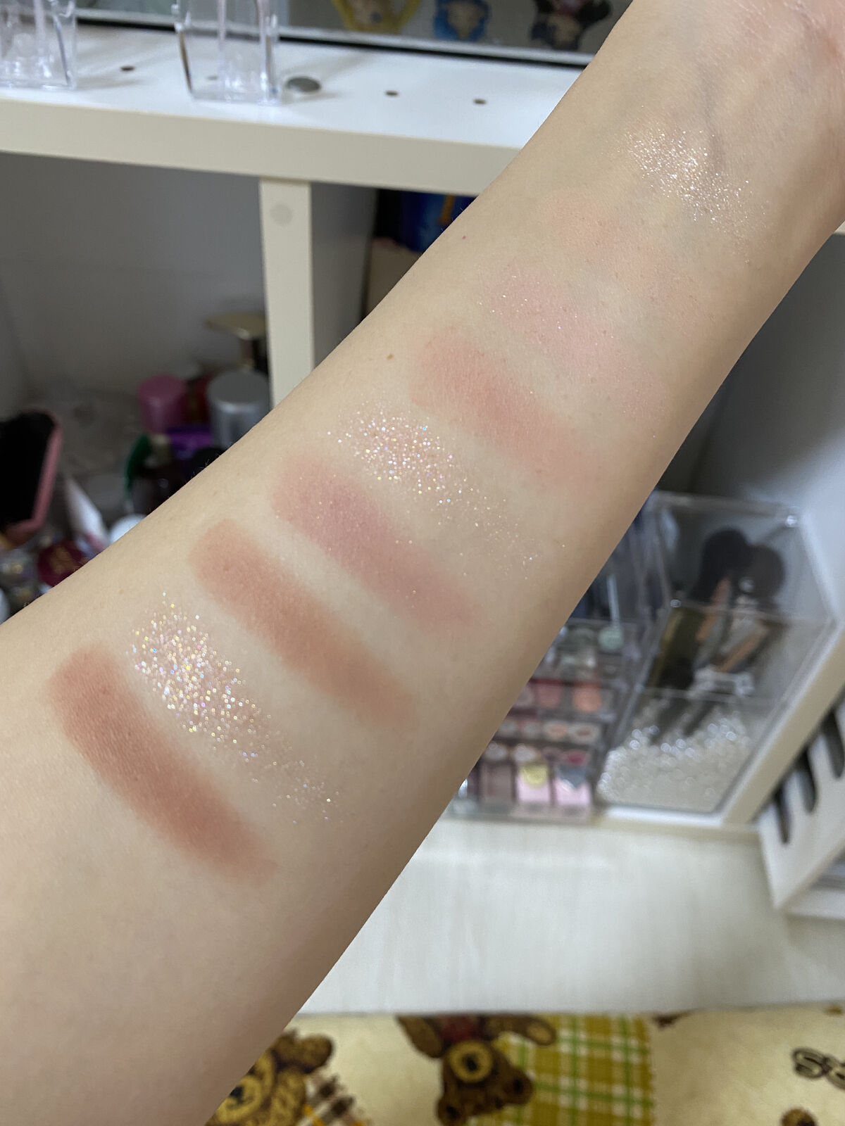 半額+送料で¥1685円!!!! めちゃくちゃお得に買えてテンション上がりましたー❤️ 配送もめちゃくちゃ早くて2日で届きました👏 もーめっちゃくちゃ可愛いー😭😭😭 特にラメは本当綺麗で最高すぎました🥺👏❤️ ラメ好きには本当オススメです🙏 ラメはしっとりしてるので粉とびの心配ないです🙌 発色は淡めです👌 韓国風メイクにピッタリ🇰🇷💓 思えた商品でした❤️❤️ オススメです🙌!