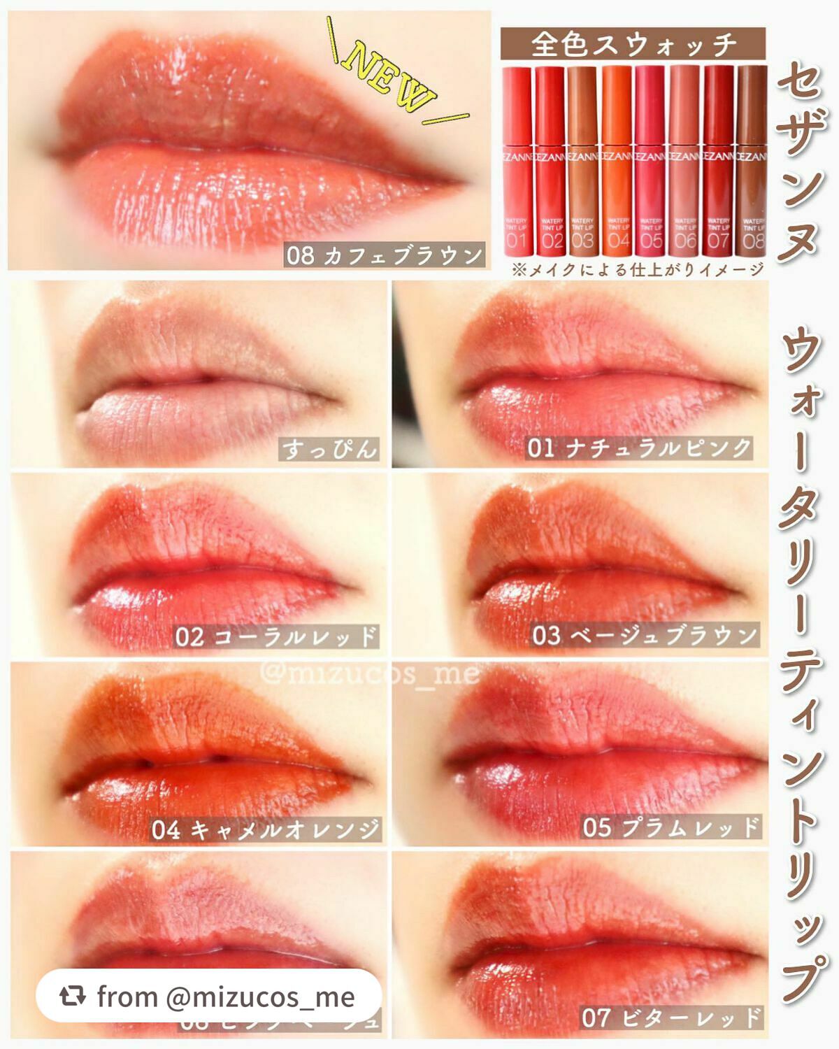 - ツヤ×色×潤いをキープする、セザンヌの新濡れツヤリップ みずみずしい濡れツヤ感ある仕上がりで、発色とツヤが長続きするティントリップです。ティントの発色を透明のベールで覆うリップコートのような処方で、ツヤ感と色をキープします。さらに、唇表面のべたつきは少なく、しっとり潤うオイルinウォーター処方を採用しています。