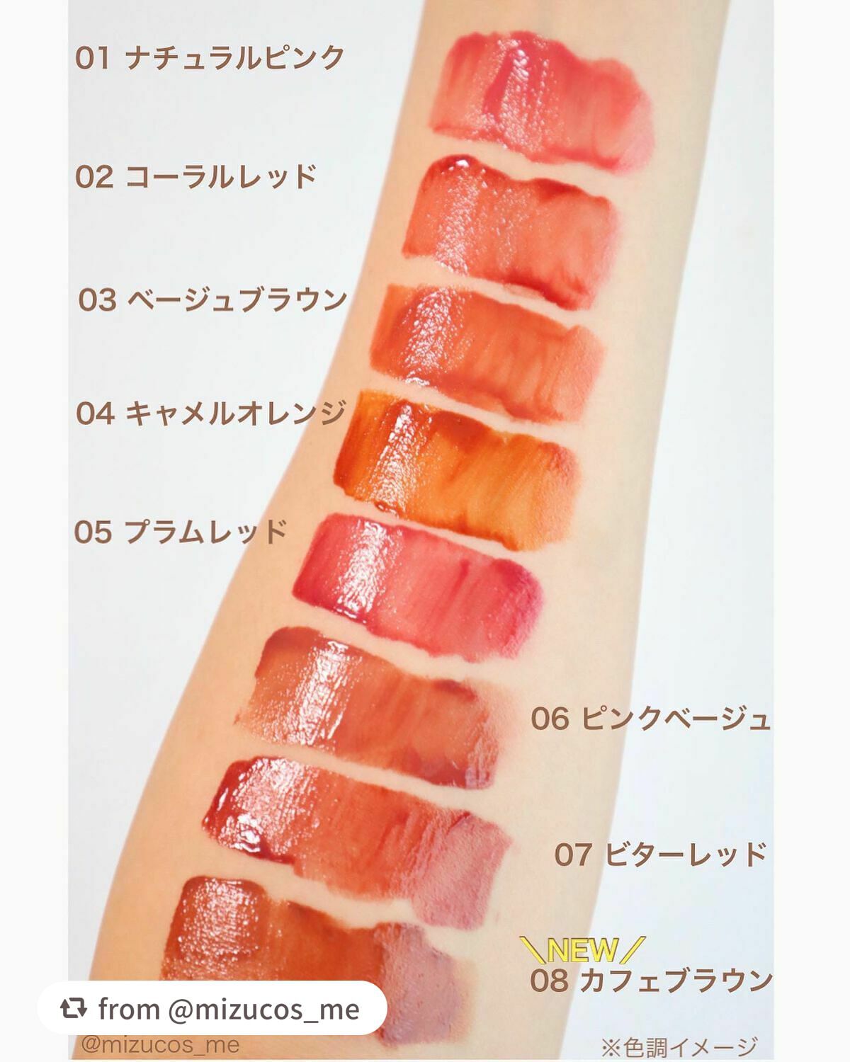 - <01 ナチュラルピンク> 水、ダイマージリノール酸(フィトステリル/イソステアリル/セチル/ステアリル/ベヘニル)、ダイマージリノール酸ダイマージリノレイル、ジフェニルシロキシフェニルトリメチコン、オクチルドデカノール、ラウロイルグルタミン酸ジ(フィトステリル/オクチルドデシル)、水添ポリイソブテン、BG、ジフェニルジメチコン、セテス-10、グリセリン、エタノール、セチルPEG/PPG-10/1ジメチコン、(アクリル酸ヒドロキシエチル/アクリロイルジメチルタウリンNa)コポリマー、イソヘキサデカン、フェノキシエタノール、メチルパラベン、トコフェロール、ポリソルベート60、エチルパラベン、デヒドロ酢酸Na、リン酸2Na、リン酸Na、イソステアリン酸ソルビタン、シメチコン、スクワラン、ハチミツ、ステアリン酸ソルビタン、ステアリン酸グリセリル、ローヤルゼリーエキス、オレイン酸ポリグリセリル-10、セルロースガム、ヒアルロン酸Na、ローズマリー葉エキス、カミツレ花エキス、水溶性コラーゲン、クエン酸、クエン酸Na、(+/-)ジカプリン酸ネオペンチルグリコール、トリイソステアリン酸ポリグリセリル-2、酸化チタン、マイカ、赤227、黄4、青1、水酸化Al、ポリアスパラギン酸Na、シリカ、キサンタンガム、EDTA-2Na、酸化鉄、PVP <02 コーラルレッド> 水、ダイマージリノール酸(フィトステリル/イソステアリル/セチル/ステアリル/ベヘニル)、ダイマージリノール酸ダイマージリノレイル、ジフェニルシロキシフェニルトリメチコン、オクチルドデカノール、ラウロイルグルタミン酸ジ(フィトステリル/オクチルドデシル)、水添ポリイソブテン、BG、ジフェニルジメチコン、セテス-10、グリセリン、エタノール、セチルPEG/PPG-10/1ジメチコン、(アクリル酸ヒドロキシエチル/アクリロイルジメチルタウリンNa)コポリマー、イソヘキサデカン、フェノキシエタノール、メチルパラベン、トコフェロール、ポリソルベート60、エチルパラベン、デヒドロ酢酸Na、リン酸2Na、リン酸Na、イソステアリン酸ソルビタン、シメチコン、スクワラン、ハチミツ、ステアリン酸ソルビタン、ステアリン酸グリセリル、ローヤルゼリーエキス、オレイン酸ポリグリセリル-10、セルロースガム、ヒアルロン酸Na、ローズマリー葉エキス、カミツレ花エキス、水溶性コラーゲン、クエン酸、クエン酸Na、(+/-)ジカプリン酸ネオペンチルグリコール、トリイソステアリン酸ポリグリセリル-2、酸化チタン、マイカ、赤227、黄4、青1、水酸化Al、ポリアスパラギン酸Na、シリカ、キサンタンガム、EDTA-2Na、酸化鉄、PVP <03 ベージュブラウン> 水、ダイマージリノール酸(フィトステリル/イソステアリル/セチル/ステアリル/ベヘニル)、ダイマージリノール酸ダイマージリノレイル、ジフェニルシロキシフェニルトリメチコン、オクチルドデカノール、ラウロイルグルタミン酸ジ(フィトステリル/オクチルドデシル)、水添ポリイソブテン、BG、ジフェニルジメチコン、セテス-10、グリセリン、エタノール、セチルPEG/PPG-10/1ジメチコン、(アクリル酸ヒドロキシエチル/アクリロイルジメチルタウリンNa)コポリマー、イソヘキサデカン、フェノキシエタノール、メチルパラベン、トコフェロール、ポリソルベート60、エチルパラベン、デヒドロ酢酸Na、リン酸2Na、リン酸Na、イソステアリン酸ソルビタン、シメチコン、スクワラン、ハチミツ、ステアリン酸ソルビタン、ステアリン酸グリセリル、ローヤルゼリーエキス、オレイン酸ポリグリセリル-10、セルロースガム、ヒアルロン酸Na、ローズマリー葉エキス、カミツレ花エキス、水溶性コラーゲン、クエン酸、クエン酸Na、(+/-)ジカプリン酸ネオペンチルグリコール、トリイソステアリン酸ポリグリセリル-2、酸化チタン、マイカ、赤227、黄4、青1、水酸化Al、ポリアスパラギン酸Na、シリカ、キサンタンガム、EDTA-2Na、酸化鉄、PVP <05 プラムレッド> 水、ダイマージリノール酸(フィトステリル/イソステアリル/セチル/ステアリル/ベヘニル)、ダイマージリノール酸ダイマージリノレイル、ジフェニルシロキシフェニルトリメチコン、オクチルドデカノール、ラウロイルグルタミン酸ジ(フィトステリル/オクチルドデシル)、水添ポリイソブテン、BG、ジフェニルジメチコン、セテス-10、グリセリン、エタノール、セチルPEG/PPG-10/1ジメチコン、(アクリル酸ヒドロキシエチル/アクリロイルジメチルタウリンNa)コポリマー、イソヘキサデカン、フェノキシエタノール、メチルパラベン、トコフェロール、ポリソルベート60、エチルパラベン、デヒドロ酢酸Na、リン酸2Na、リン酸Na、イソステアリン酸ソルビタン、シメチコン、スクワラン、ハチミツ、ステアリン酸ソルビタン、ステアリン酸グリセリル、ローヤルゼリーエキス、オレイン酸ポリグリセリル-10、セルロースガム、ヒアルロン酸Na、ローズマリー葉エキス、カミツレ花エキス、水溶性コラーゲン、クエン酸、クエン酸Na、(+/-)ジカプリン酸ネオペンチルグリコール、トリイソステア