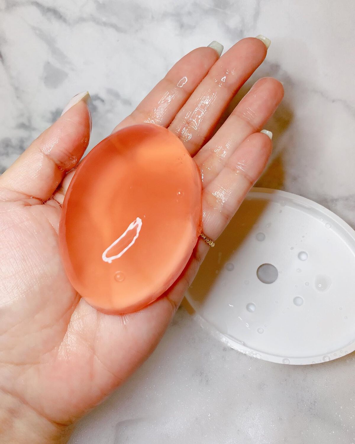 弾力のあるぷるぷるとした触り心地のデリケートゾーン用ソフトウォッシュです✧ 粘膜部分は避け、デリケートゾーンに直接当てて洗える柔らかい石鹸というのが新感覚でした! 自分の手で洗うよりも直接撫で洗いする事によって爪でデリケートゾーンを傷付ける心配がないのが良い◎ 7 種の保湿成分と2種の整肌成分配合◎ ぷるぷるで可愛くて、ほんのり香るフローラルムスクの香りにも癒されました! デリケートな部分にも安心な弱酸性◎ 専用のトレイ付きなので保管もし易い◎ かゆみやニオイなどトラブルを防ぐにはデリケートな肌環境に合った洗浄料で洗う事が大切なので続けて使いたいと思います‼︎