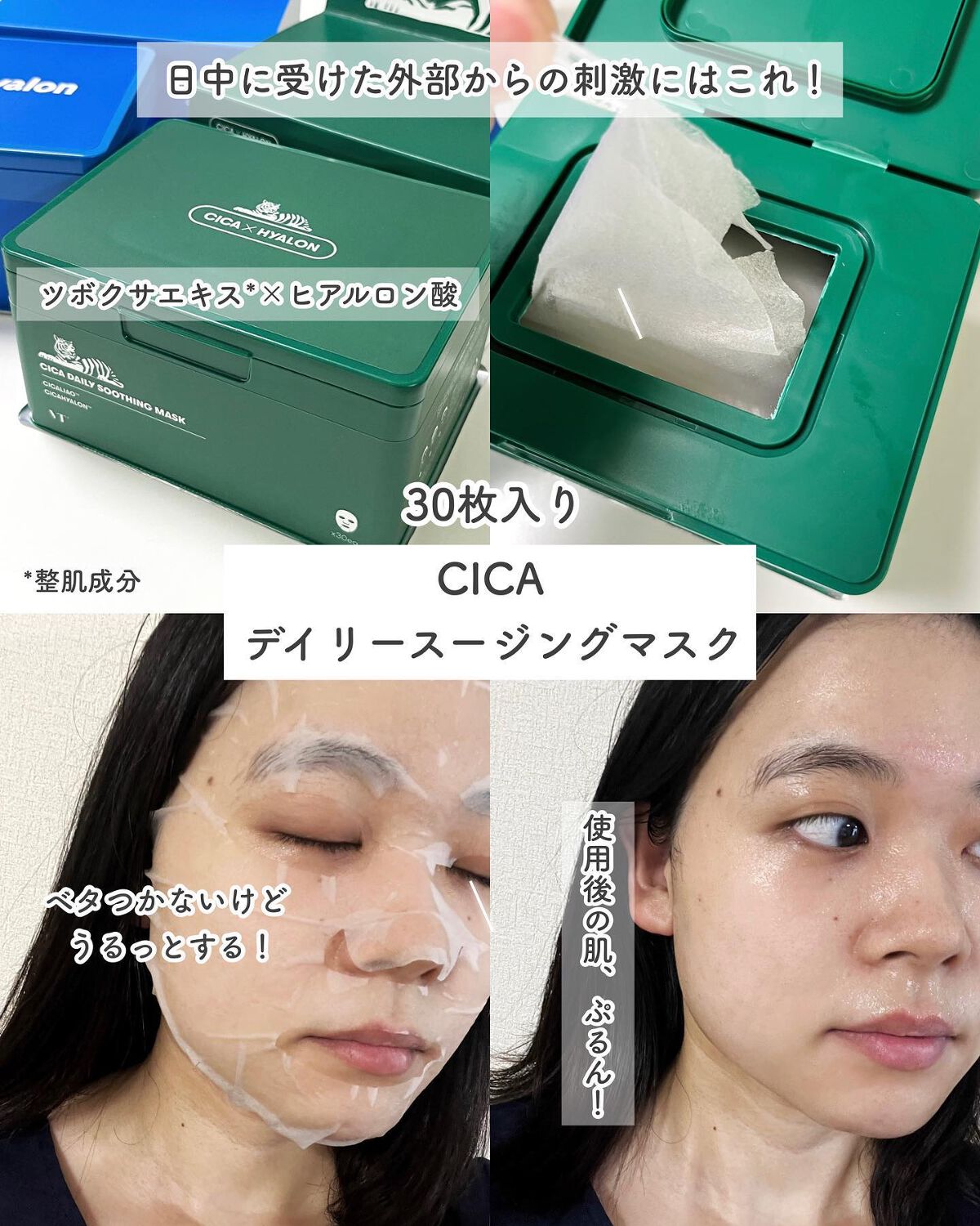 VTCosmeticsCICAデイリースージングマスク TXトーニングデイリーマスク リードルSビタライトデイリーマスクデイリーケア用にはこれ!Qoo10のメガ割で毎回2個ずつ買ってて、これまで7種類くらい使ってる🐯極薄シートでひたひたすぎな...