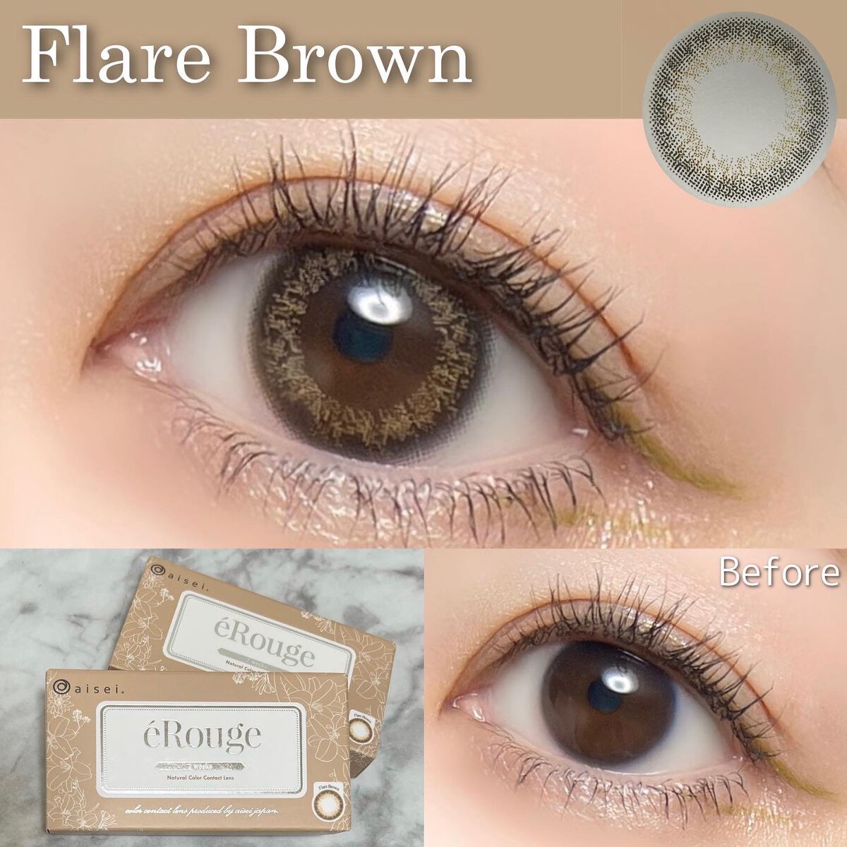 瞳を大きくはかなげな印象にみせるベージュミックスの色素薄めブラウンカラー。 デート専用レンズ。着けてるとバレずにこっそり可愛いが仕込めるふんわりデザイン。 ブラウンカラーにピンクをほんのりプラス。着けることで一気に甘い顔になれるレンズ。 ハイライトカラーがくすみを飛ばし、ヘルシーな血色感と輝きをプラス。洒落感ライトブラウン。 甘すぎないスモーキーブラウンで、さり気なく瞳の輪郭を強調した、愛されブラウン。 暗めのアッシュブラウンで叶える、凛とした艶やかさ。目力をアップしながら、ふんわりフチで抜け感を演出。