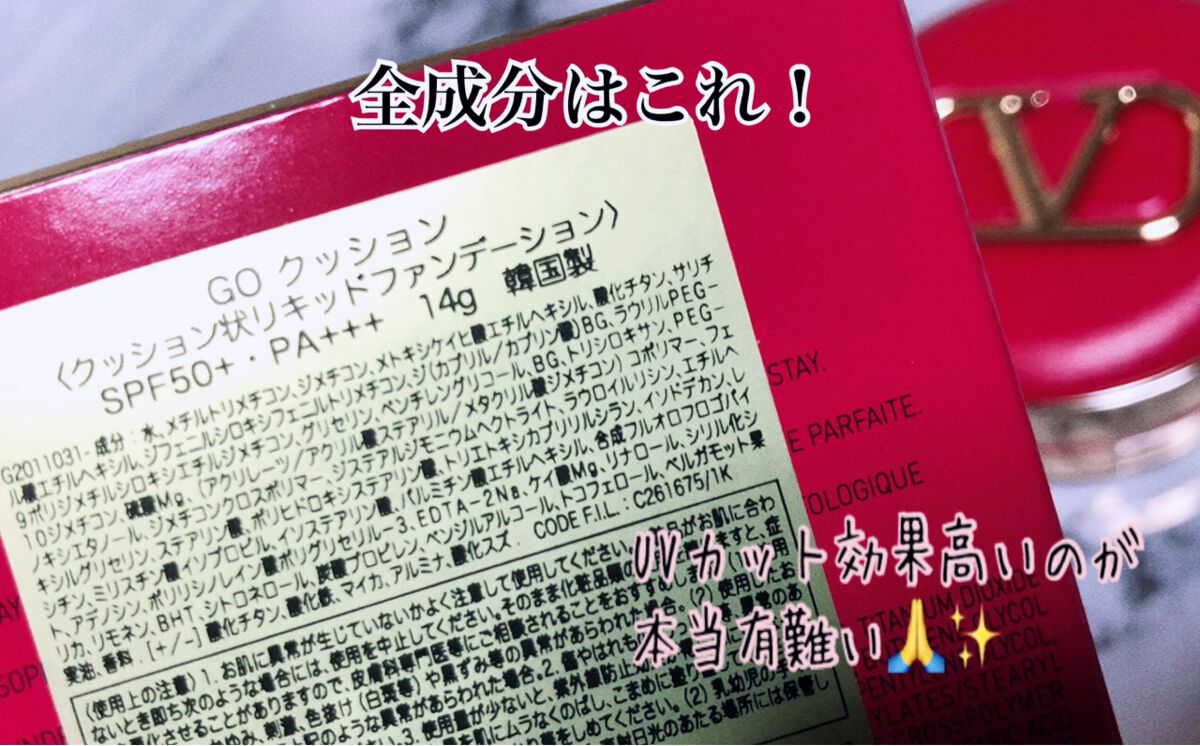 ヴァレンティノGOクッションSPF50+PA+++ パケの高級感とパケの可愛さ♥️持ち歩き決定ですね✨ みずみずしく、のびもいいので使いやすかったです😊カラーは少し明るめでした❗ 他のカラーを試したいです😉 さすがにマスクではよれるので、トナーパッドなどで少しオフして、ポンポンの簡単なお直しにもむいています😃