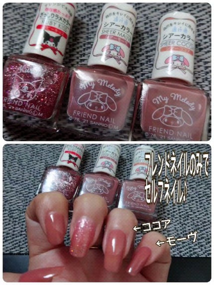 Dフレンドネイル Cシアーココア(中指・小指)ボトルの色の通りのくすみピンク🩷🩶一度塗りは自爪が透けます。私が下手くそでムラができてしまうので二度塗りしています。開けたてはサラッとしています。ただドロっとしてくるのが早い感じがしました。薄め液...