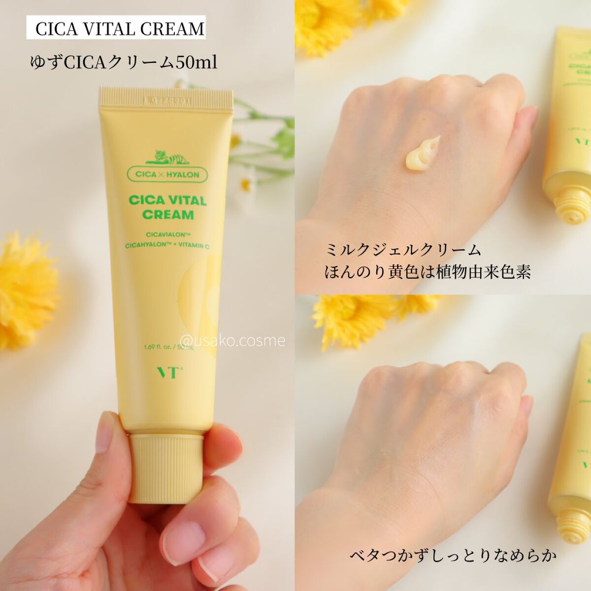 ゆず×CICAでぽんっと弾ける輝きに満ちたツヤ美肌へ◻️VTシカバイタルクリーム¥2,730(税込)VTの黄色パケといえばゆずビタ×CICAのシカバイタルシリーズ!整肌成分CICA(ツボクサエキス)とハリ保湿のユズ種子エキス配合。乾燥によって...