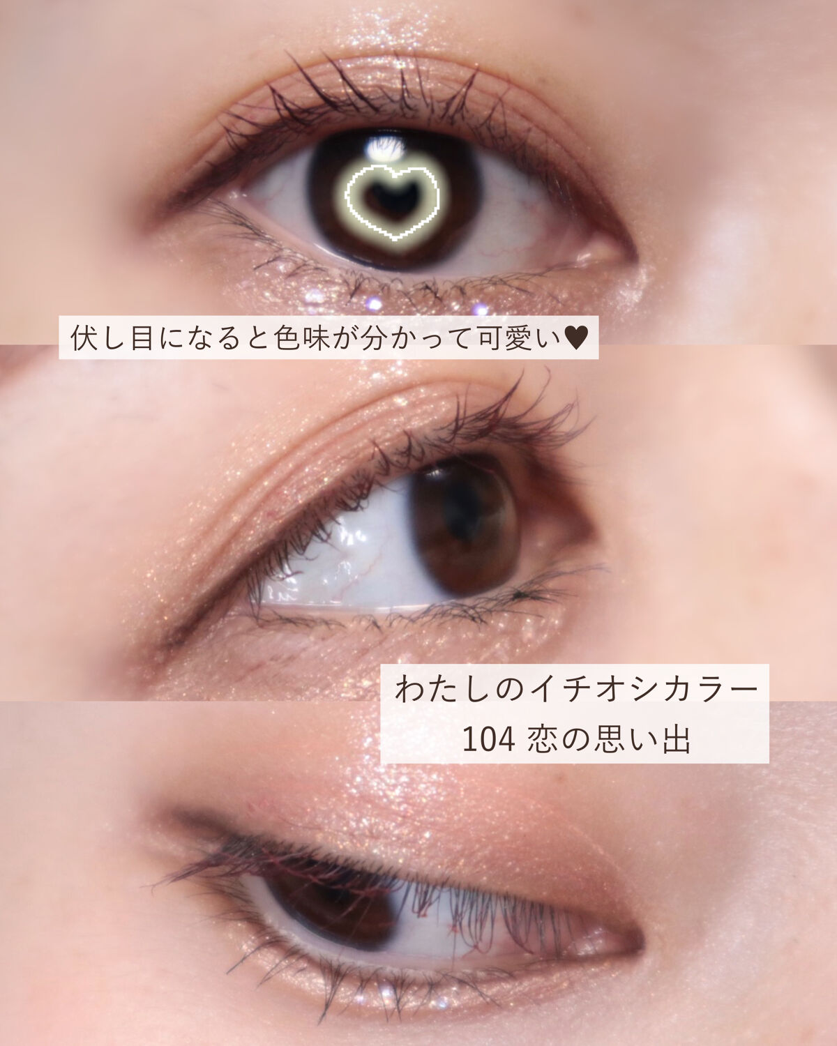 上まぶたに使っても濡れツヤ感がとても綺麗で 涙袋に使ってもぷっくりと爆誕してくれる万能シャドウ🫶🏻 サイズが小さめながら1つ3,520円という ちょこっと贅沢なアイシャドウ。 これを上下のまぶたに塗るだけで簡単に グラデーションもできて上品なおしゃれな目元に🥺💗 パウダーなんだけどクリームのような質感も 兼ね備えている新感覚なアイシャドウ パウダーとは思えない濡れツヤ感のある仕上がりなの! メタリックっぽさも感じられる不思議な輝きもありつつ ぎっしりパールでめちゃくちゃ華やかな輝きもあるよ〜☺️💗