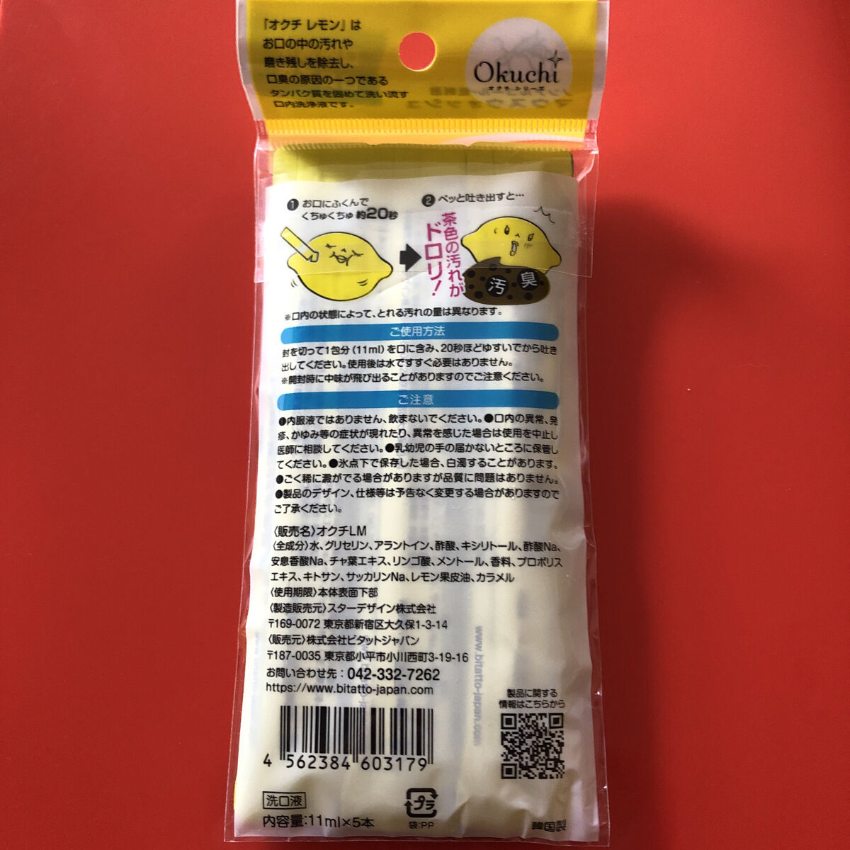 - ●爽やかなレモンフレーバー ●口をゆすいだ後に自分の口の中の汚れが見えて驚き ●20秒ゆすいで速攻リフレッシュ ●携帯に便利なスティックタイプ