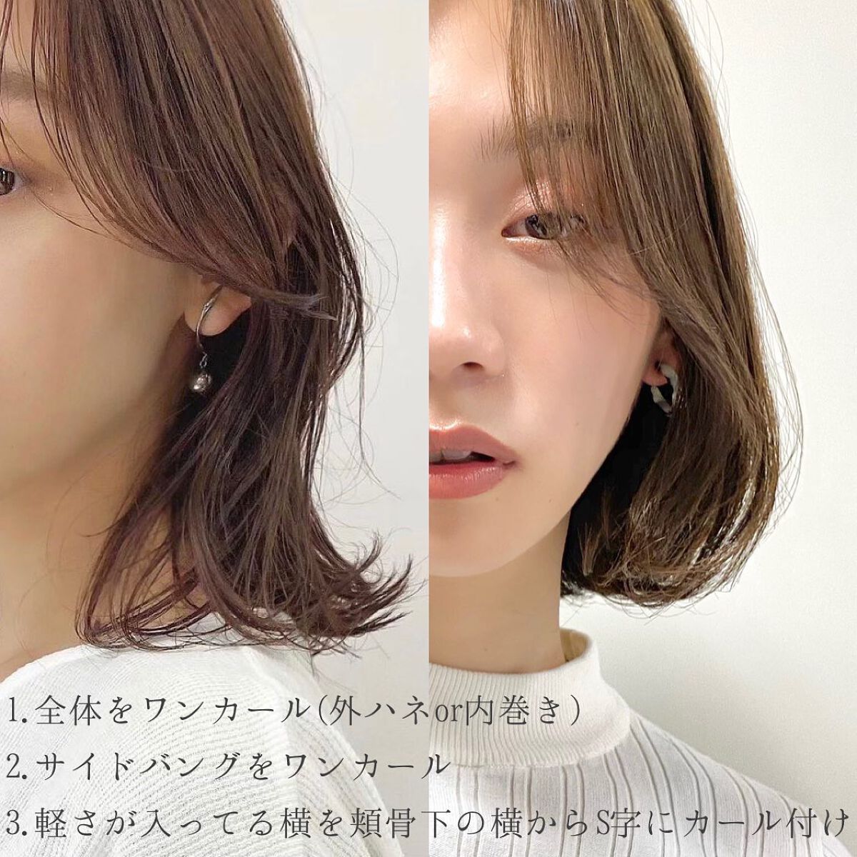 特に、ブリーチ毛やダメージ毛にオススメです✨ 熱を通した後の髪の手触りの変化がすぐ実感出来ます👏 そんなハイテクなヘアアイロンを使ったボブ巻きをご紹介🧚♀️.* 【ボブ巻き手順】 ①全体を外ハネ ②表面の顔まわりを外巻き ③コテ幅分ほどの間隔を空けながら 表面をミックス巻き ④バームをつけて束感とスタイルキープ力を♪ 【使用ヘアアイロン】 LUMIELINA ヘアビューロン L-type 34.0mm