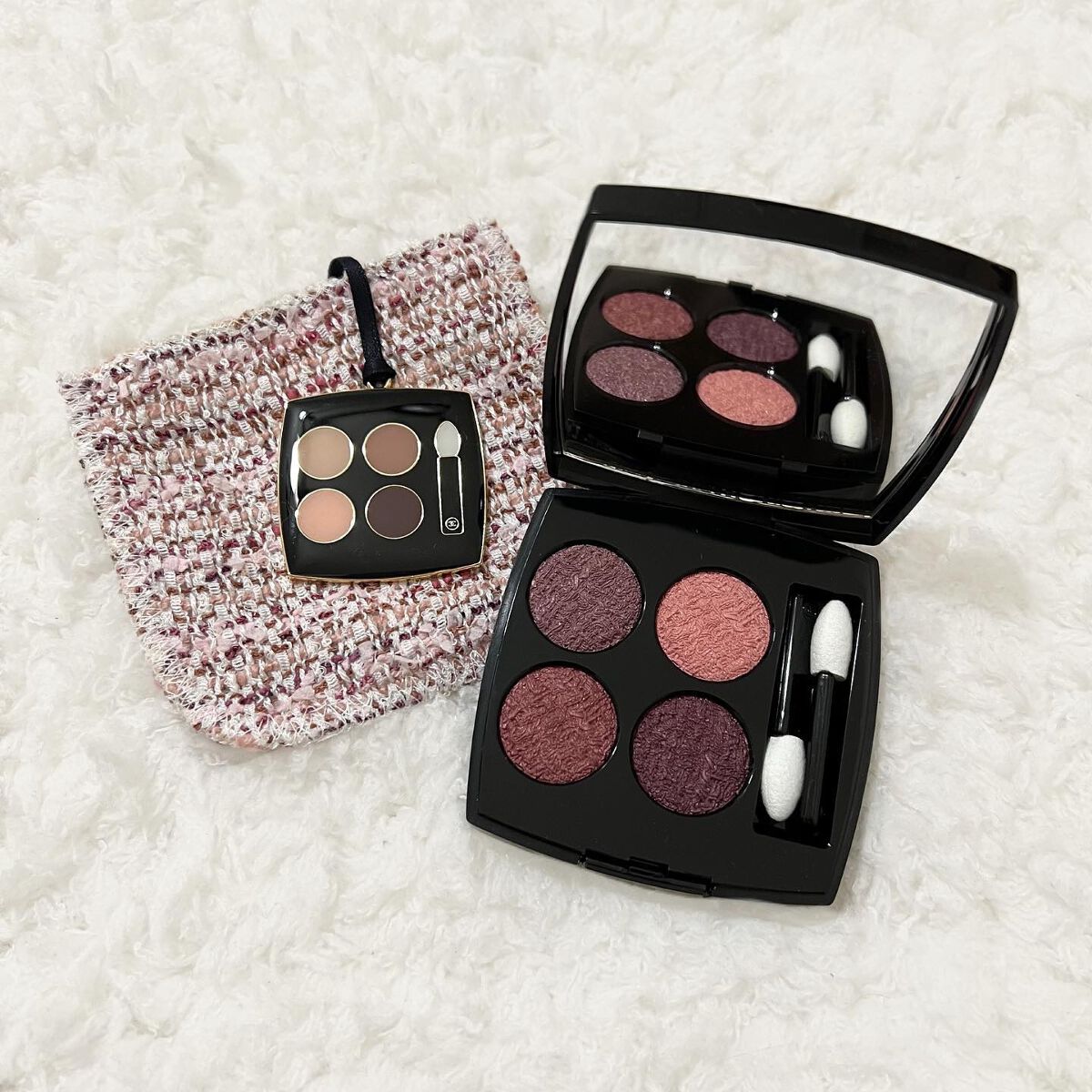 ツイードのアイシャドウも、ポーチもとっても可愛いです💗 ノベルティのチャームも、ギフトボックスに入っていた黒いポーチ(サンプルが入っていました)も可愛い〰︎🥺 私は02にしました♡ 04もめちゃくちゃ気になっています🫣