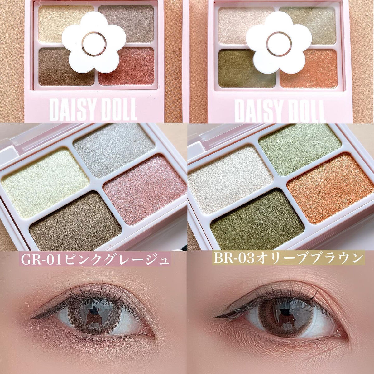 \可愛くもカッコよくもなれる!/【DAISYDOLLアイカラーパレット】☑️¥1.430☑️BR-04ハニーブラウンやわらかなブラウン系2色とハイライトカラー、キラキララメ1色で構成されたアイシャドウパレット🎨カラーの組み合わせや重ね方次第で...