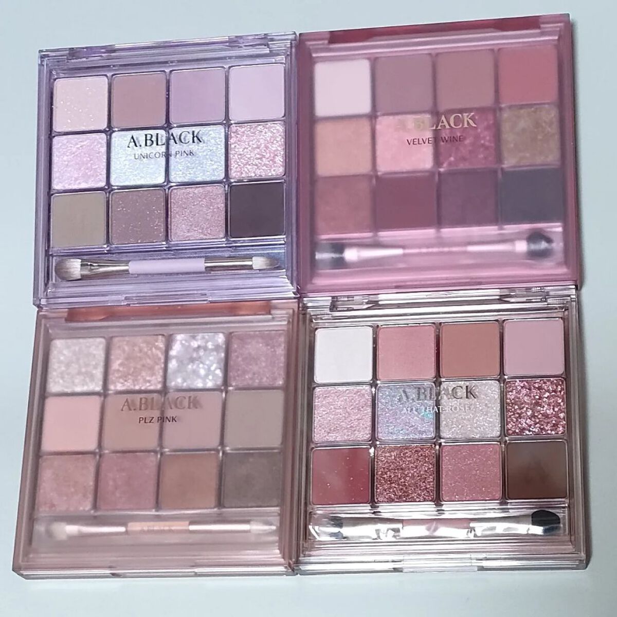 ラカは粉質がよく、マットのまぶたへの溶け込み方・ラメの煌めきが綺麗!特に左から2番目が絶妙で使いやすくてお気に入りです。 アプリンは全部ラメで構成されたキラキラパレット!ラメ飛びが少なくて優秀です。