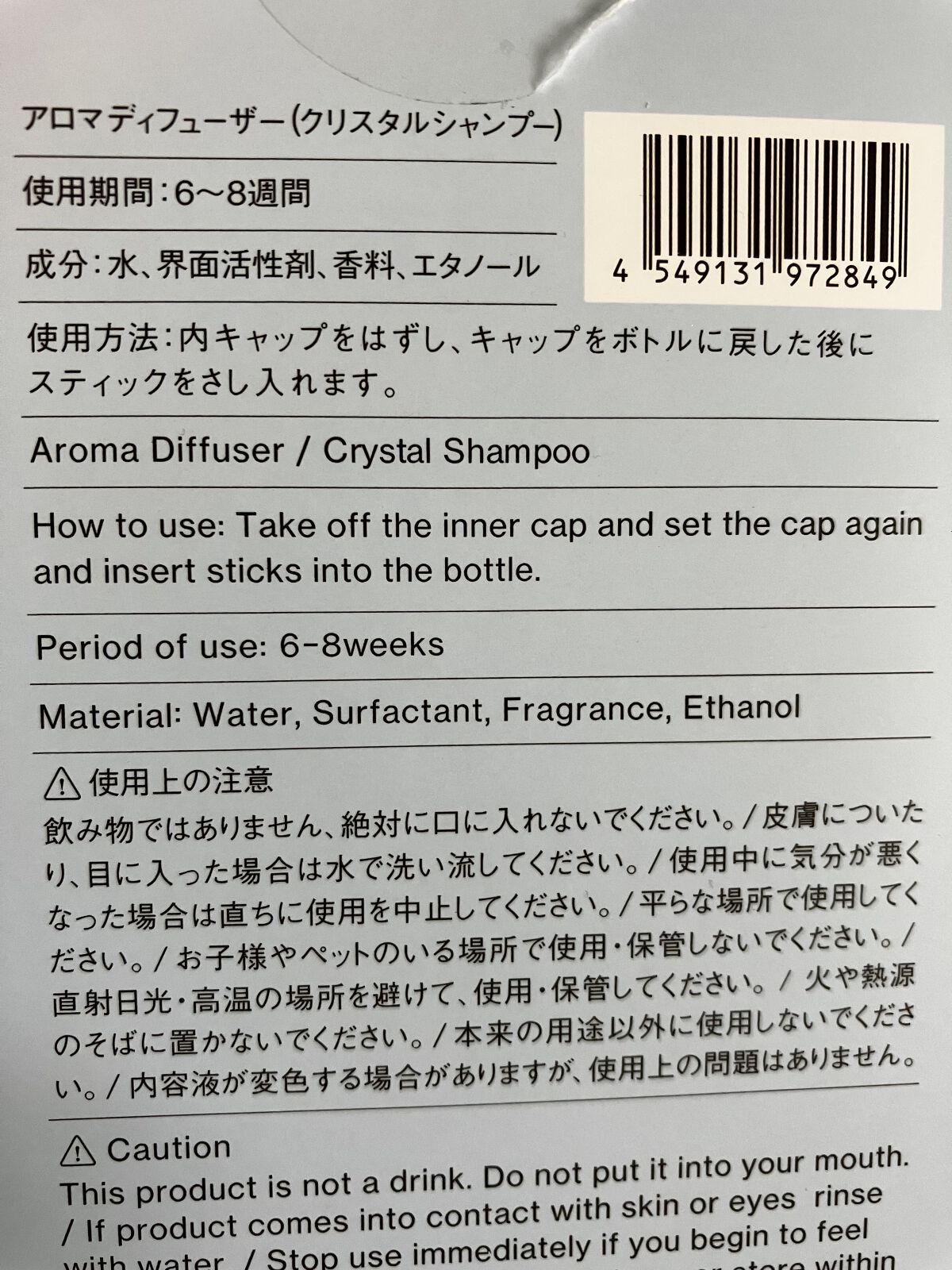 いい匂い!爽やかで甘くない! アロマディフューザー用スティックは6本付き 私は3本立てて軽く香らせてます 550円でグリーンティー、オーシャンなどの香りが数種類あるので気軽に試せます