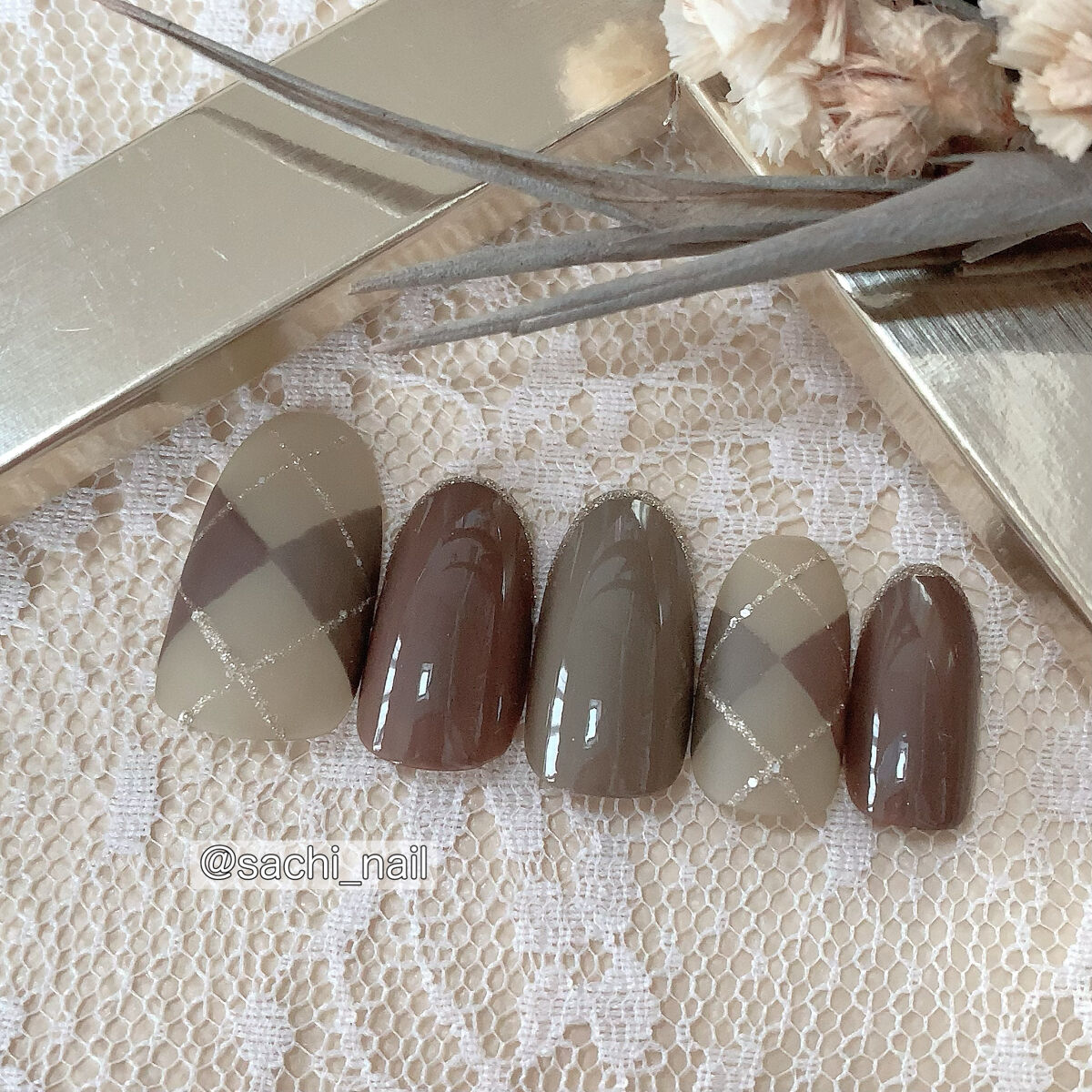 ワンカラーでも指ごとに色を変えるだけでオシャレに見えます💕 画像のようにゴールドラインとストーンを少し足すだけで華やかさがアップ🥰 何度かご紹介したことのあるスポンジで作るグラデーションです✨ スポンジを使うことで境目が綺麗に馴染んでくれます💕 アルミホイルの上でブラウンとトップコートを1:1くらいで混ぜたものを、トップコートのハケに取って3箇所に塗るだけ👌 事前に混ぜたものを塗ることで、爪の上でぼかすより簡単に出来ます💕 ベースカラーが乾く前に点置きしてぼかすことで綺麗にぼかせます✨ スピードが大事なので、使うポリッシュのキャップは全て開けておきましょう😊 天然石のラインはガタガタの方がより天然石っぽく見えるので、ラインを描くのが苦手な方でも大丈夫🙆♀️ 難しそうに見えて、やってみると意外と簡単に出来ます♡