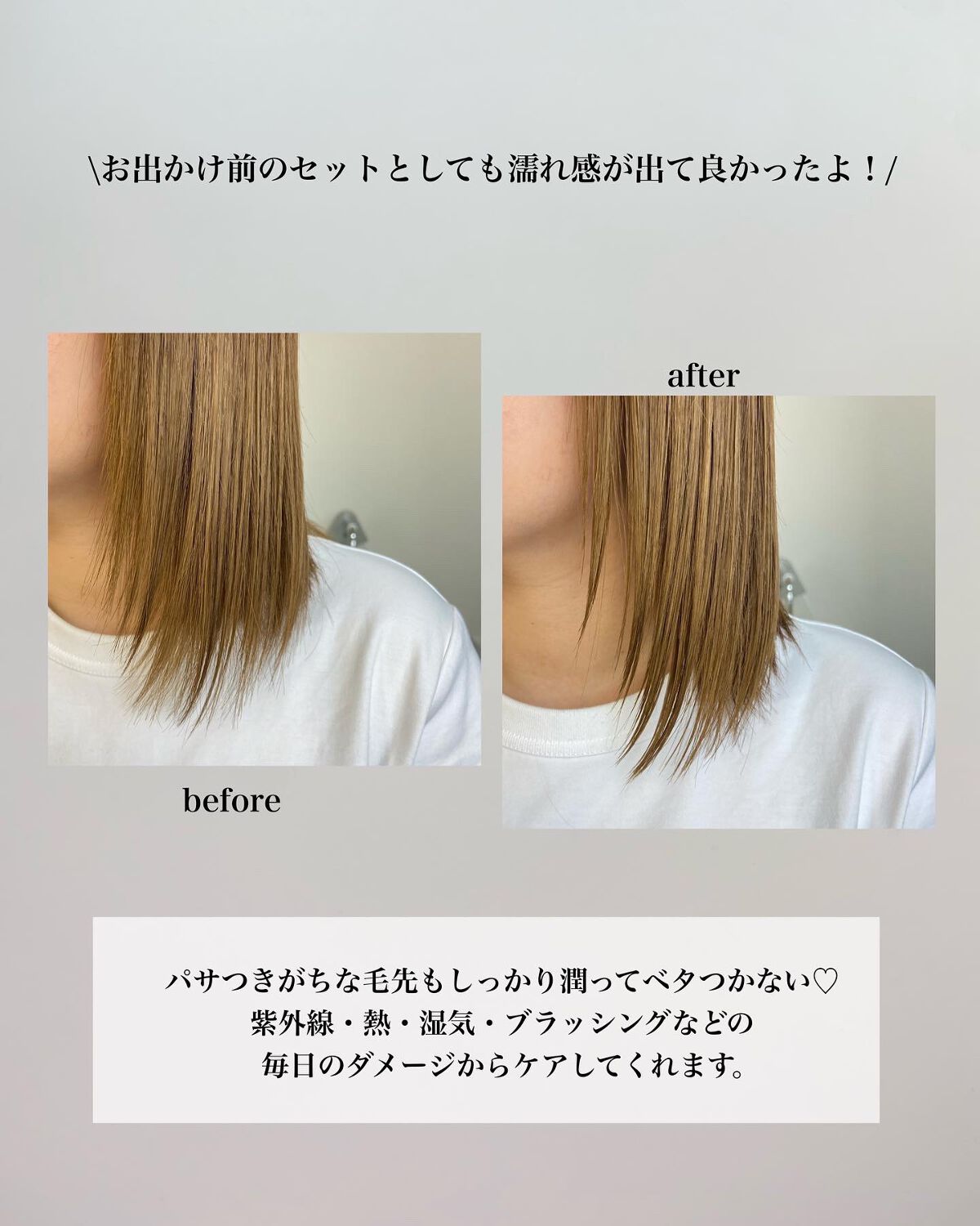 | 毛先だけじゃなく、髪全体に使えます🥰 自然にまとまって、ツヤっとした髪に✨ | 詳細を見る |