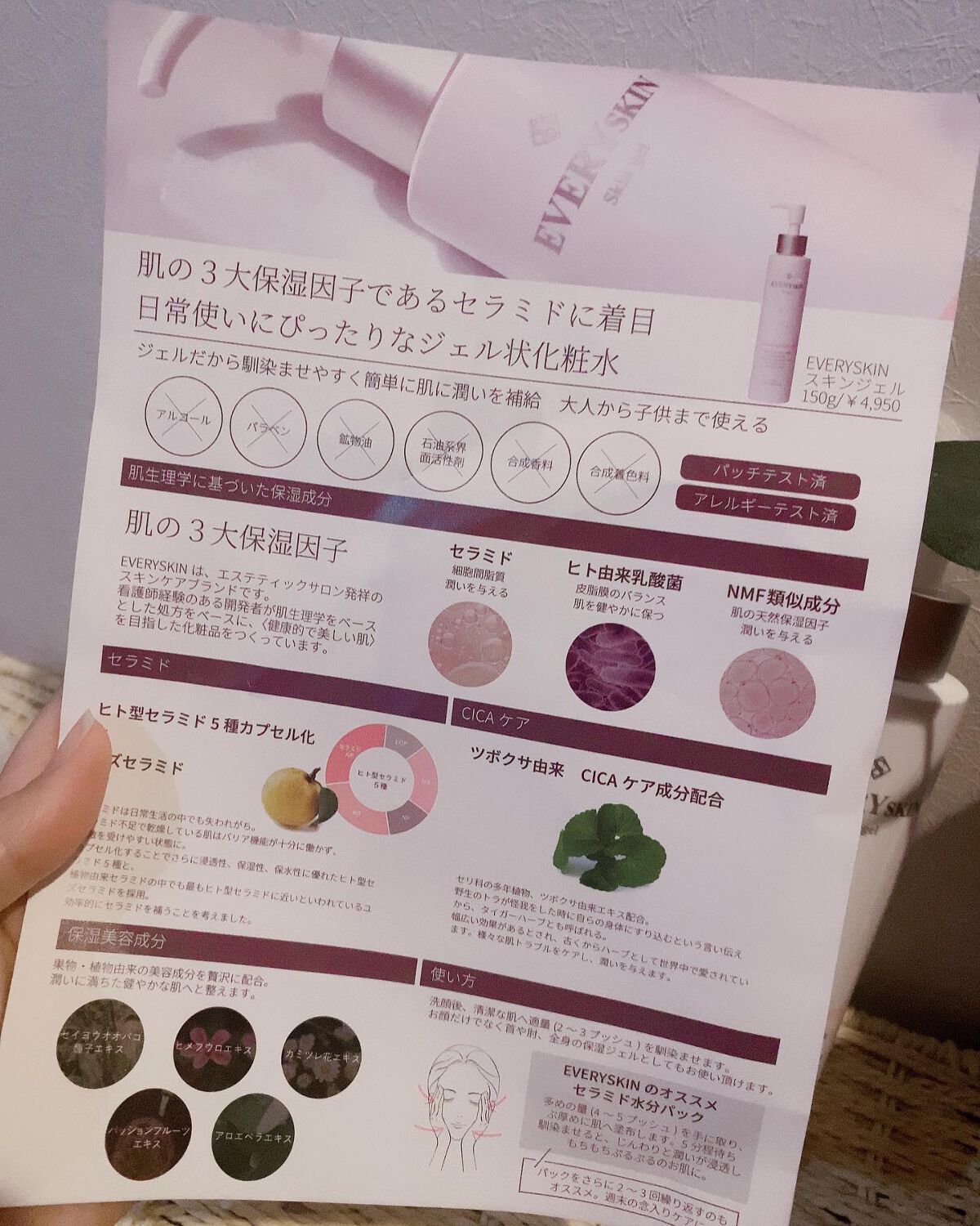 EVERYSKIN『スキンジェル』150g4,950円(税込)ヒト型セラミド配合の、高保湿ジェル状化粧水✨浸透力の高いカプセル化のヒト型セラミド5種を配合し、さらにCICAケアのツボクサ由来成分や、肌に潤いを与える植物由来美容成分を複数配合💡...