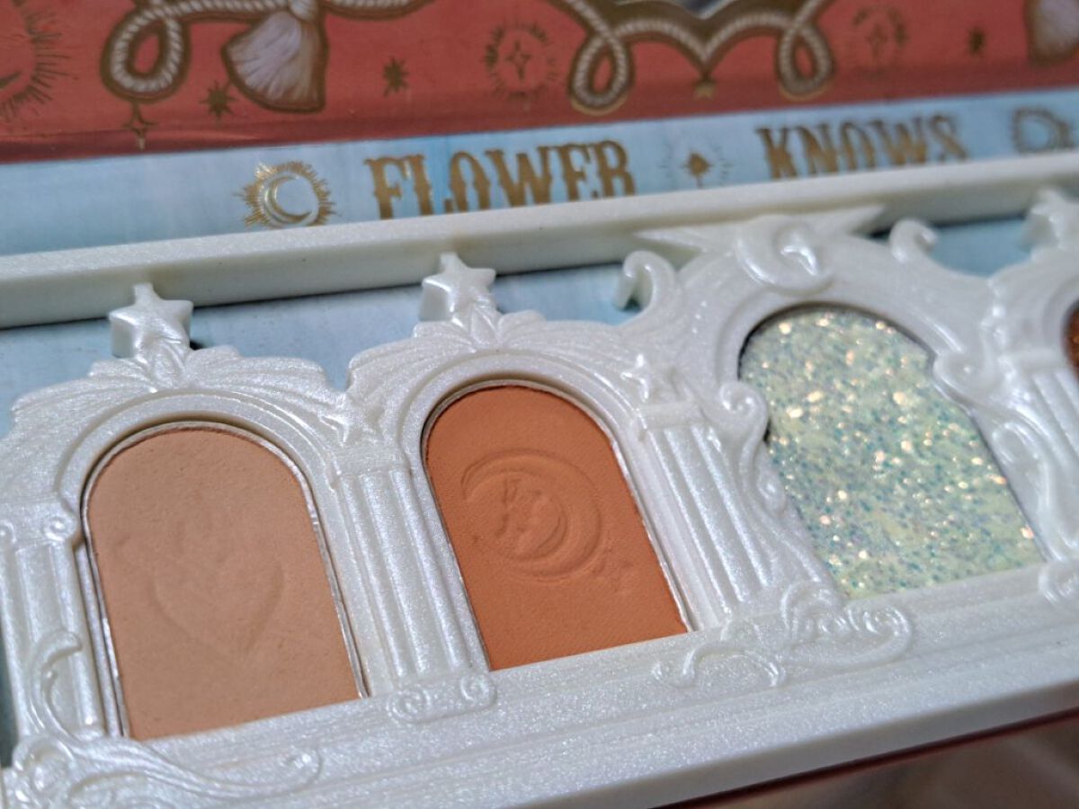 このブランドはどの子も付けすぎ注意だけどチークとなると範囲も広いわ でも目の周りに使うととても可愛くて最強になれるわ 少し柔らかいのかしら筆でくるくるっとしたら可愛い柄がぼんやりしたわ 可愛いとにかく可愛い見た目は大優勝間違いなし 色味失敗しちゃった...ってこともあるかもしれない でも見てるだけでハッピー顔の前でキメれば変身できること間違いなし マットなのも付けすぎても安心でいいわFlowerKnowsさんは他アイテムでも可愛いラメのものが多いから自分でツヤをカスタムできる楽しさが最大級の愛満たしてる