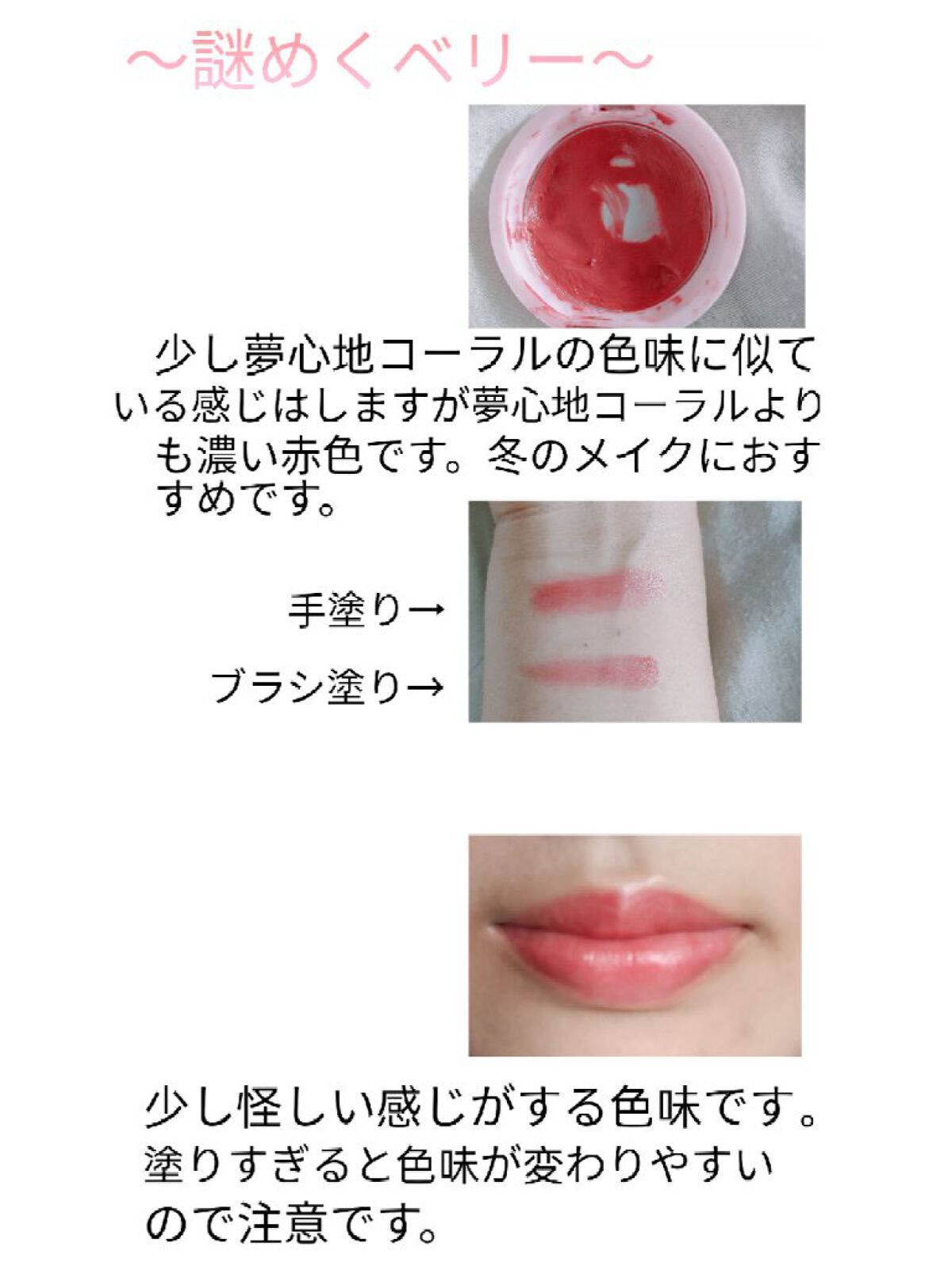 | クリームチークランキング第151位 | クリームチークとリップなのでお直し用にとっても便利!発色もとってもよく色持ちも◎ | 詳細を見る | |