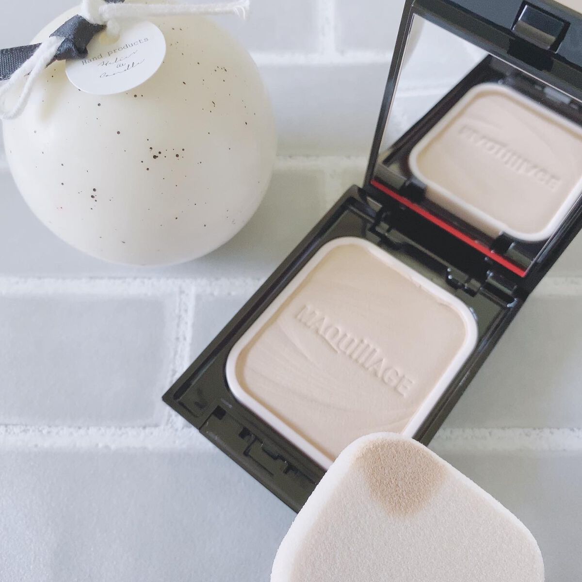 ふんわりとした仕上がりながら自然なツヤ感を演出するパウダーファンデ◎ 資生堂独自の「ムースプレス製法」により、美容液水とパウダーをムース状にして固めた軽やかなテクスチャーが特徴です。 肌に溶け込むようななめらかなフィット感で、毛穴や色ムラをふんわりとカバーしてくれる感じ。