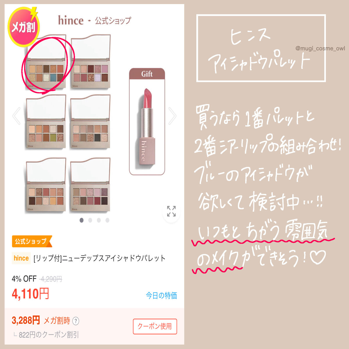 こんにちは。こんばんは。今回は3CEの3CEニューテイクアイシャドウパレットをレビューしたいと思います!【使った商品】3CE3CEニューテイクアイシャドウパレットモーションフレームニューテイクアイシャドウパレットC【使ってみて】他の色がどうい...