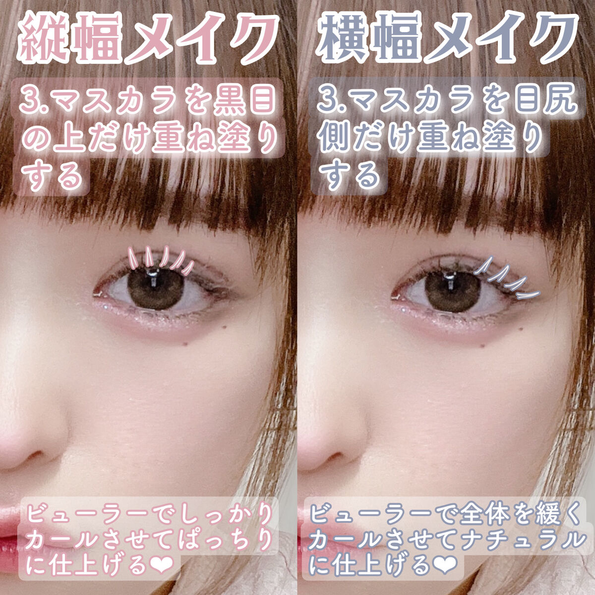 筆先が本当に細くて細かい線が描きやすく、私的にまつ毛を描くのにすごく向いていると思います🤔 目頭に3角にちょこんとラインを描くと蒙古襞がないアーモンドアイに近づけることができます! 横幅があるように見せる上でアイラインの役目は大きいです✔️ 下まつ毛を描くことの効果が分かりやすいのは少しツリ目気味な方で、ツリ目だと下目尻に隙間ができるので(伝わるかな💦)、そこを埋めるようにして描いてあげると書いた部分まで目があるように見えます! まつ毛を上げることで縦幅も強調できます✊🏻まつ毛はかなり印象も変わりますし、垢抜けたい方は絶対こだわってメイクするべきだと思います!