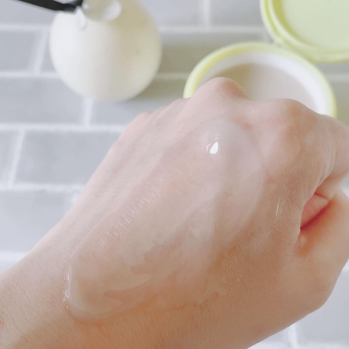 ぷるんぷるんのゼリーのようなジェル状のテクスチャーは、少し硬めなので液ダレせずに使えるのでお肌に伸ばしやすい✨ ベタベタすることなく使えて、さっぱりとした使い心地なので他のスキンケアと併用したり、気になる箇所には重ね付けしたりして使えます🌿 このオールインワンゲル1つで、基本的なスキンケアができるので忙しい朝にも嬉しいアイテムです✨