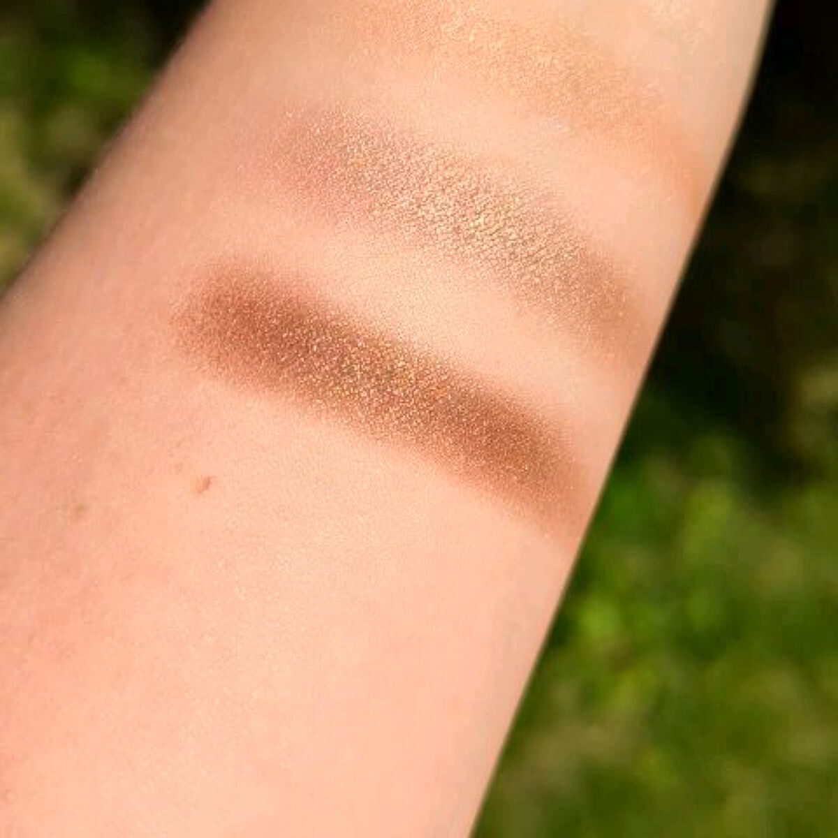 マットの発色をご覧ください。 マットでここまで発色するのって、珍しい。 特にパープル系のマットは、作るのが難しいらしく、ハイブランドでも発色がよくブレンドしやすいマットパープルを作るのに苦労するそう。 ですがこちらのaztkのマットパープルは、一塗りですんごい発色。 しっとりしているわけではないのですが、しっかり密着してくれる感じもします。 逆にパール系は少し発色優しめかな?と思いますが、ニュアンス的に使う分には問題なし。 ラメはギラギラのラメではなくチラチララメで、とっても上品。 いろんなシャドウと組み合わせて無限大にアイメイクが楽しめそうです。